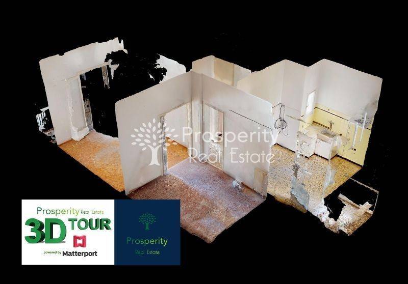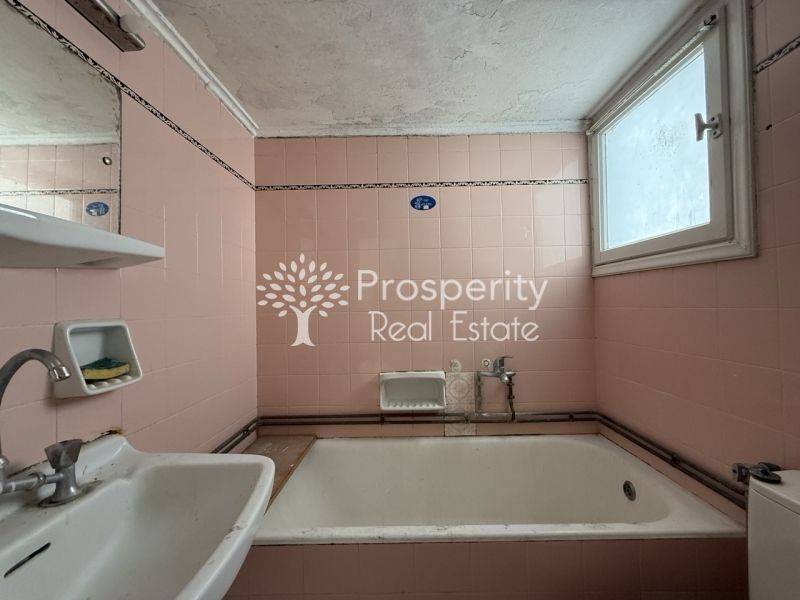 It features 1 bedroom, a cozy living room, a separate kitchen, and a bathroom. The apartment is dual-aspect, freshly painted, and ready for renovation to truly shine.