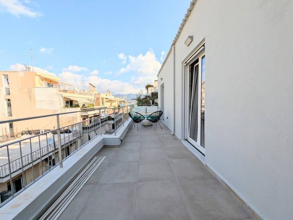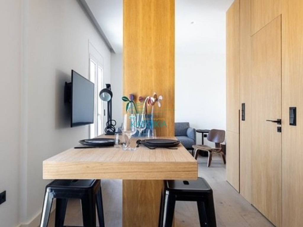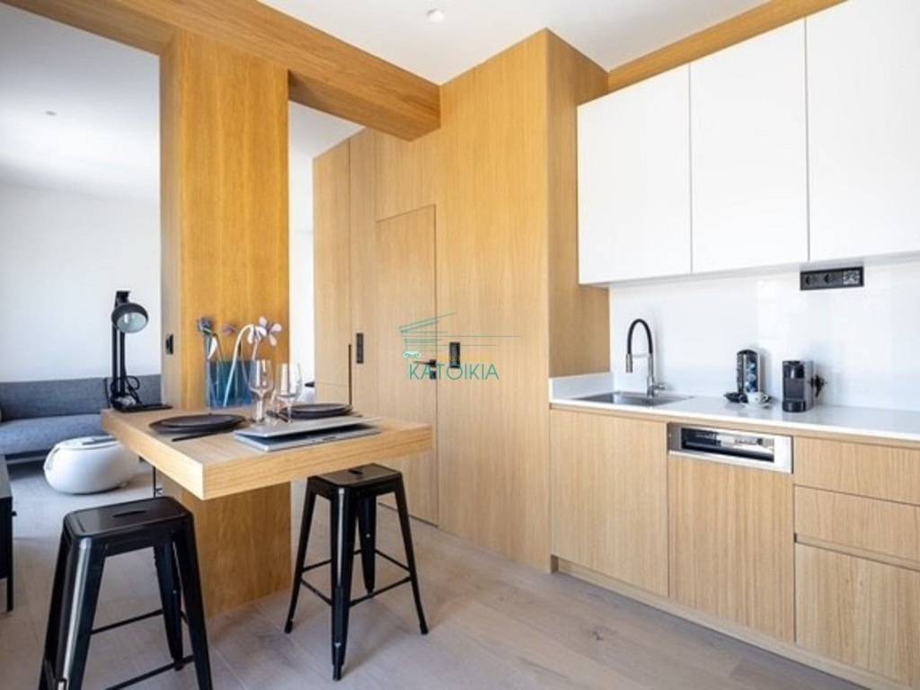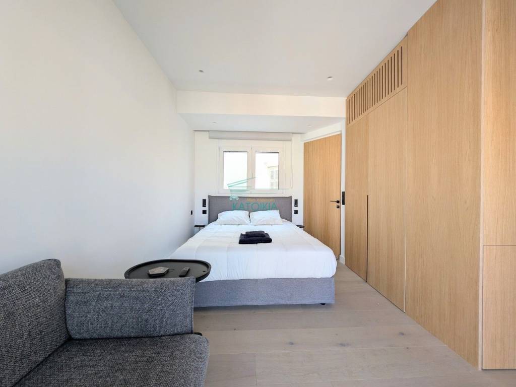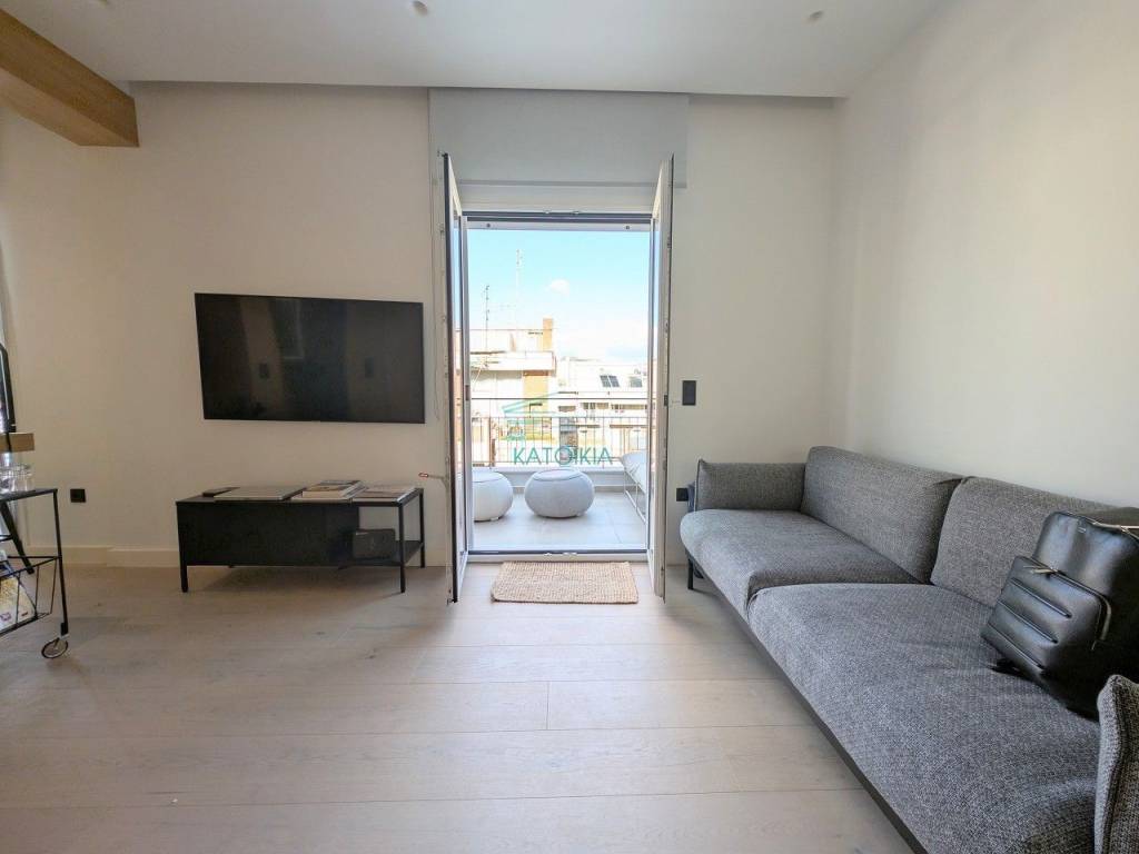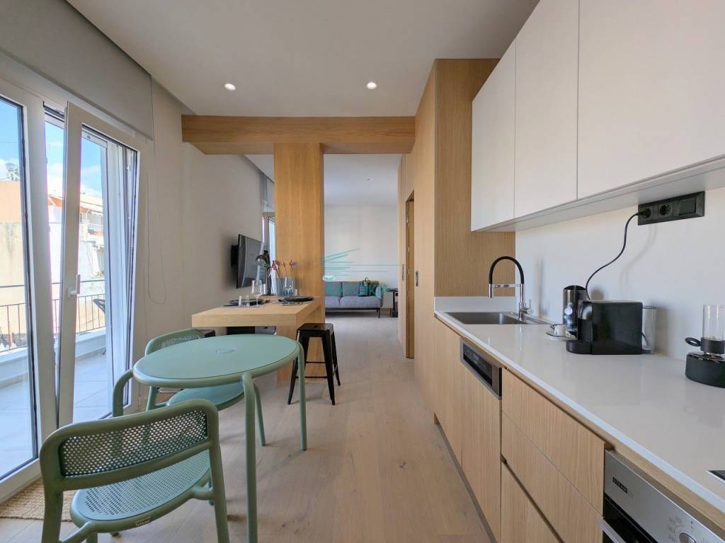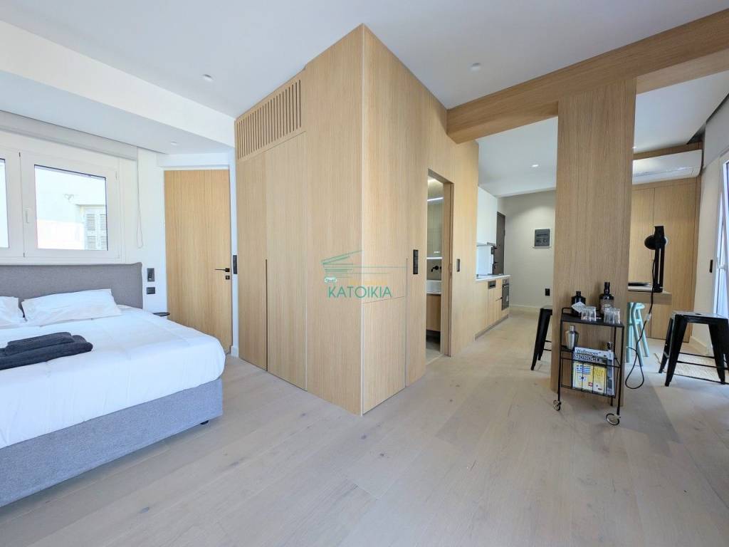 A true gem in the heart of the city, an exceptional, bright 39 sq.m. penthouse studio on the 4th floor, which has just completed (2025) a total, luxury renovation of high standards. The property stands out for its practical and contemporary layout: it features an elegant reception area, followed by a modern, open-plan kitchen that is fully equipped with built-in electrical appliances, thereby maximizing the functionality and aesthetics of the space. It is complemented by a beautiful living area which merges with the bedroom, as well as a contemporary, flawlessly designed bathroom. The greatest advantage of the penthouse is its very large veranda, which offers a beautiful view and an open horizon. Furthermore, the apartment is bathed in natural light throughout the day, creating a pleasant and airy atmosphere. This is the ideal choice for those seeking a ready-to-use, modern, and luxurious living space or an excellent investment opportunity, code 58299