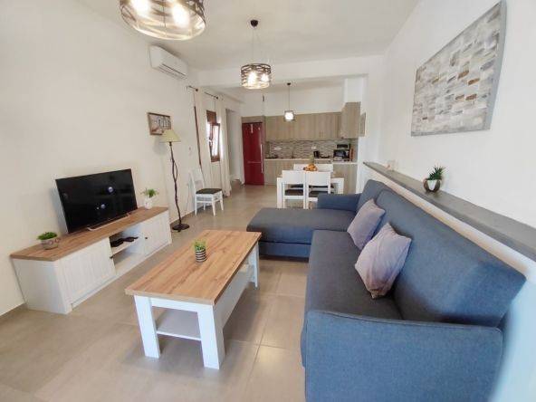 In Kouse, a village in the province of Heraklion Prefecture, a single-family house of 80 sq m is available for sale. The property consists of 2 bedrooms, 1 bathroom, 1 living room, kitchen, yard and terrace, while it has 2 air conditioners, , wood stove, grill and is fully equipped with appliances and furnished. The single-family house also has a parking space. The house is located in the center of the village of Kouse, it has a lovely view and is ideal for those who are looking for a peaceful life close to nature but at the same time do not want to sacrifice the security that life in a settlement gives them. Kouse is built at an altitude of 130 m. at the northern foothills of Asterousia on the Pyrgos hill. This traditional historic village has a panoramic view of the Mesara plain, to the southwest of which it is located. A short distance from the village are the ports of Matala, Agia Galini, Kokkinos Pyrgos and Kale Limani. Some of its neighboring villages are Petrokefali, Sivas, Pobia as well as the antiquities of Phaistos.