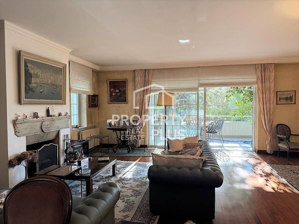 In a very nice and quiet area of Filothei, in a building with a total of 4 apartments, 1st-floor apartment of 196.70 sq.m., built in 1990. It consists of an entrance hall, a very large reception area with a fireplace and access to a spacious balcony, dining room, guest WC, closed kitchen with sitting area, 3 bedrooms, one of which is a master, and 2 bathrooms. The apartment features large balconies with nice views, aluminium frames with double glazing, independent oil heating, a 20 sq.m. basement storage room, and 2 underground parking spaces (one of which is small).
