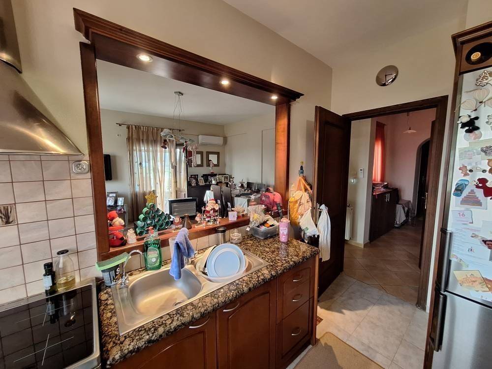 Syros, Vari: Discover this bright and airy 103 sq m apartment, which is located on a spacious 1000 sq m plot on the 1st floor of a three-story building. Built in 2005, the apartment offers autonomous oil heating and air conditioning, ensuring comfort all year round. It consists of 3 bedrooms, 1 kitchen, 1 living room, as well as 2 bathrooms. Enjoy the stunning sea view from the apartment while relaxing in the beautiful garden.