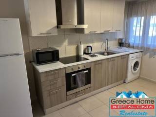 Leivatho, Peratata, Apartment For Rent, 60 sq.m., Property Status: Amazing, Floor: Ground floor, 1 Level(s), 1 Kitchen(s), 1 Bathroom(s), Heating: Autonomous - Petrol, View: Good, Energy Certificate: B+, Floor type: Tiles, Type of door frames: Aluminum, Features: Night stream, Satellite Receiver, Double Glazed Windows, Window Screens, Balcony Cover, No shared expenses, Luxury, Airy, Roadside, AirConditioning, Grass, Trees, Back yard (Garden), New Construction, Distance from: Airport (m): 5500, Seaside (m): 2500, City (m): 5000, Village (m): 100, Price: 425€. REAL ESTATE KEFALONIA, Tel: 6906987401, email: info@realestate-kefalonia.com