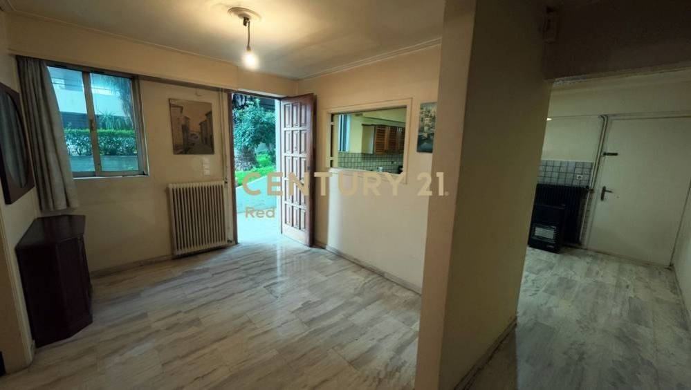 Chaidari, Dafni: For sale, a through-corner apartment of 130 sq.m. on the ground floor at the back view - basement front view of the building with central oil heating. It consists of 2 entrances, 3 bedrooms, one of which is a master, 1 living room, 1 kitchen, garden, storage room, bathroom, and 2 WCs. It was built in 1980 and offers a mountain view in a quiet neighborhood, aluminum frames, marble floors, night-time, three-phase electricity, awnings and parking spot for motorcycles in pilotis. It is ideal for ownership, but also recommended as an investment. Price negotiable €190,000 | Property Code: #21001-13836