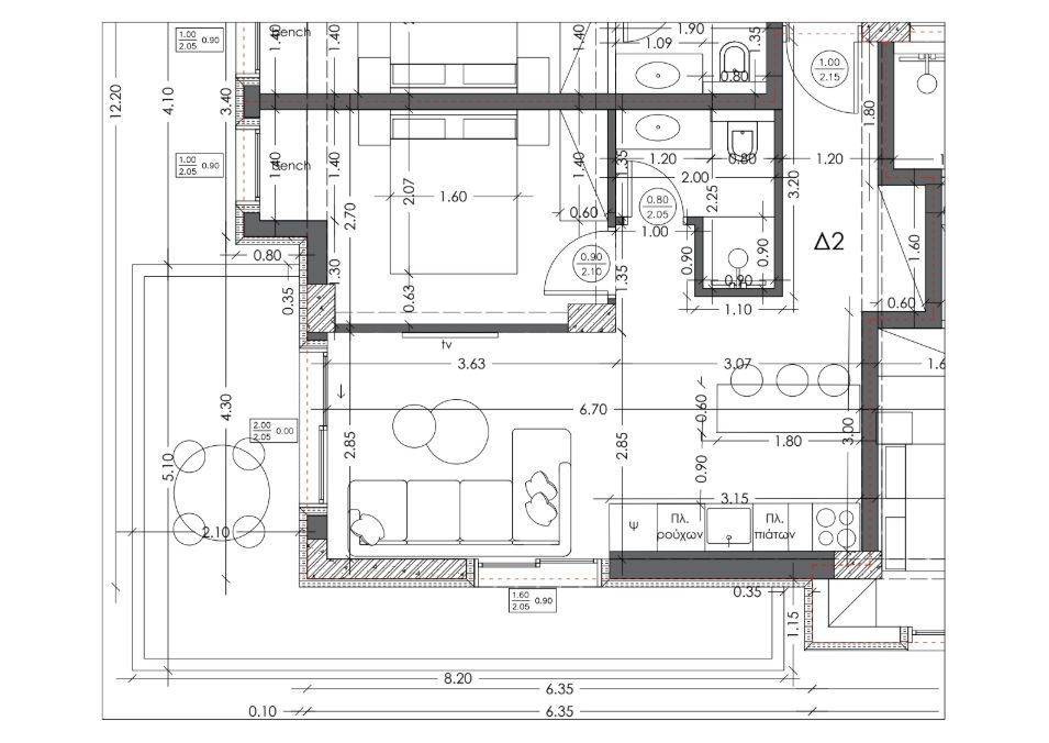 Двухкомнатная квартира Χατζηαργυρού 13, Νέα Καλλικράτεια 63080, Центр, Kallikrateia