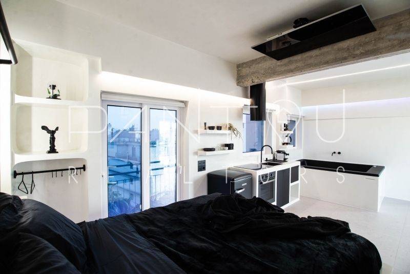 This 48 sqm 5th-floor penthouse (1970 building, lift, fully renovated 2024) belongs unequivocally here: a through, front-facing, open loft-style residence with a private ≈15 sqm veranda, 5 minutes’ walk to the METRO, designed to photograph beautifully — and perform in spreadsheets.