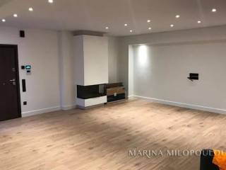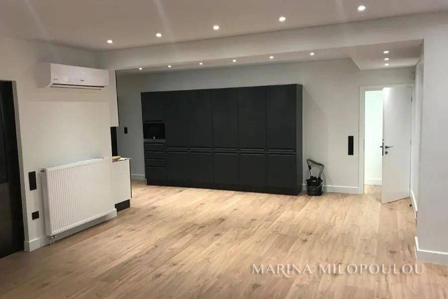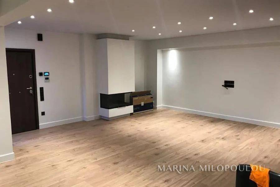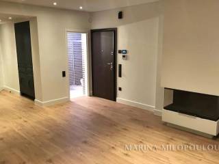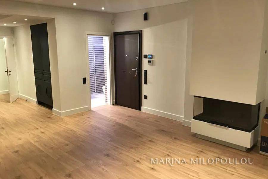 GLYFADA-Pirnari, a Renovated apartment on the 1st floor, 120sqm, Southwest orientation. It consists of a bright open-plan reception-dining area, fully equipped kitchen, 3 bedrooms, 2 bathrooms. It features autonomous natural gas heating, fireplace, a security door, 2 A/Cs, solar water heater, aluminum frames, oak flooring, security alarm, storage room, large terrace, 3 parking spaces (2 covered-1 open). The apartment is fully and radically renovated in 2021 with modern specifications and high quality materials, (electrical, plumbing, kitchen, bathroom, floors, frames, heating, insulation, etc.) Zone price 2550€ Located at a prime, high-visibility point of Glyfada, on a main avenue, suitable also for professional or office use. It is situated within the local commercial market, 200 meters from public schools, 2 km from the sopping area of Glyfada, 2.4 km from the beach and marinas of Glyfada, 4 km from the Hellinikon Metropolitan Park, and 25 km from the intern. airport.