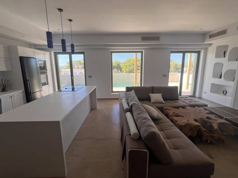 House for sale by SCOPAS REAL ESTATE and CONSTRUCTION. Located just a few steps from the beach and the center of Aliki, this newly built 220 sq.m. fully furnished villa sits on a 298 sq.m. plot and stands out for its modern architecture, premium construction quality and panoramic sea views from the upper level overlooking the nearby islands. With an ideal southwest orientation, the villa enjoys bright interiors throughout the day and stunning sunset colors. Layout Ground Floor – 104 sq.m. Open-plan living room – dining area – kitchen 1 bedroom Bathroom 5 sq.m. storage room Direct access to the 25 sq.m. private pool and spacious verandas First Floor – 68 sq.m. 2 bedrooms with en suite bathrooms Private balconies with sea views Large hallway with built-in wardrobe Basement – 51 sq.m. WC Storage room / potential additional bedroom Engine room Features & Amenities Underfloor heating with heat pump VRV air-conditioning system Outdoor terraces totaling 170 sq.m. 54 m³ water tank Access via dirt road for the last few meters The villa is delivered fully furnished, ready for immediate use. Ideal for Tourist Investment & Holiday Living Thanks to its premium location near the beach, local restaurants and village amenities, this property is perfect both for high-yield tourist rental investment and as a luxury holiday home for personal enjoyment. Distances 400 m to the beach 4.5 km to the airport 12.5 km to the port The Surrounding Area – Aliki, Paros Aliki is a charming seaside village known for its crystal-clear beaches, peaceful atmosphere and excellent dining options. It offers a perfect blend of authentic island character and modern convenience, while providing easy access to the airport and the beautiful southern coastline of Paros. A location that uniquely combines beauty, comfort and investment potential. - The location marker on the map does not correspond to the exact address of the property. - In compliance with Law N.4072/2012 - Official Gazette 86/A/11-4-2012, a valid identity card or VAT number is required when referencing the property.