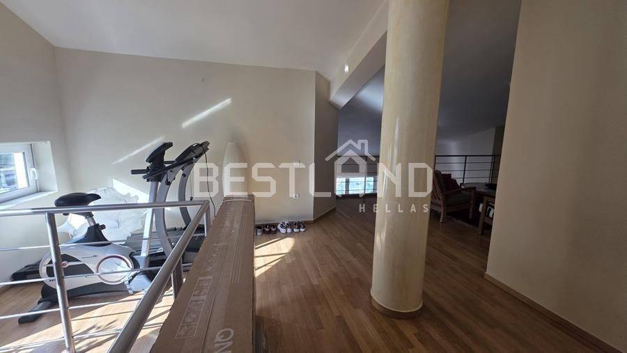 Kifissia, Politia - Tangent Maisonette 240sqm bedrooms 4, levels 2, 1st - 2nd, year built 2001, renovation year 2023, energy class C, living room, kitchen, 3 bathrooms, wc, heating type: autonomous (oil), parking open space, quiet, dual aspect apartment, luminous, mountain view, frontage, storage space, boiler, fireplace, balconies, large balconies, aluminum frames, double glazed windows, door screen, wood floors, separate kitchen, secure door, alarm, video doorbell, internal staircase, pets allowed, residential zone, access from asphalt.