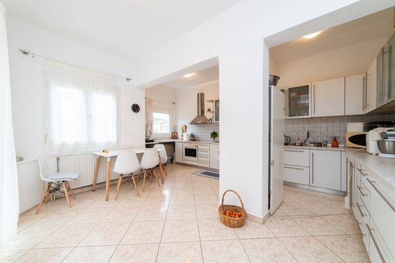 Ground floor apartment for sale with a total area of 179.00 sq.m. in the area of Krinidon, Kavala, built in 1986 and in very good condition. The apartment is located in a two-story building, built on a plot of 766.00 sq.m., facing two streets. The property was renovated in 2004, with continuous maintenance work carried out every year since its construction. It has 3 bedrooms, a large living room, kitchen, and hall, as well as PVC window frames, independent oil heating, a solar water heater, marble and granite tile floors. In the basement, with an area of 179 sq.m., there is a large storage area and the boiler room. The surrounding area has ample parking space and is landscaped with lawn and fruit trees. The apartment is a very interesting proposition for permanent residence or investment use, as it is located in a settlement that has schools of all levels, a supermarket, tutoring centers, kindergartens, K.D.A.P. (Kindergarten and Nursery), and generally everything a modern family needs. It has very easy access via a paved road and is very close to the UNESCO World Heritage Site, the ancient theater of Philippi, as well as the baptismal font of Lydia, the first European Christian, by the Apostle Paul. To view the property, you will need to present your police ID.