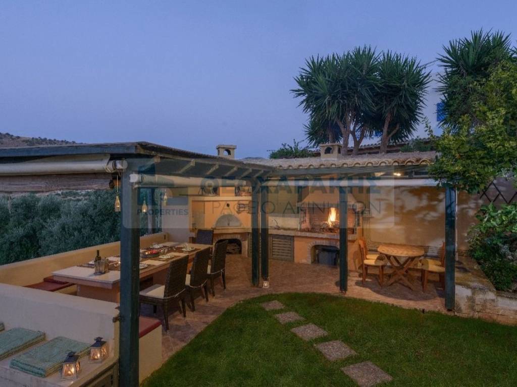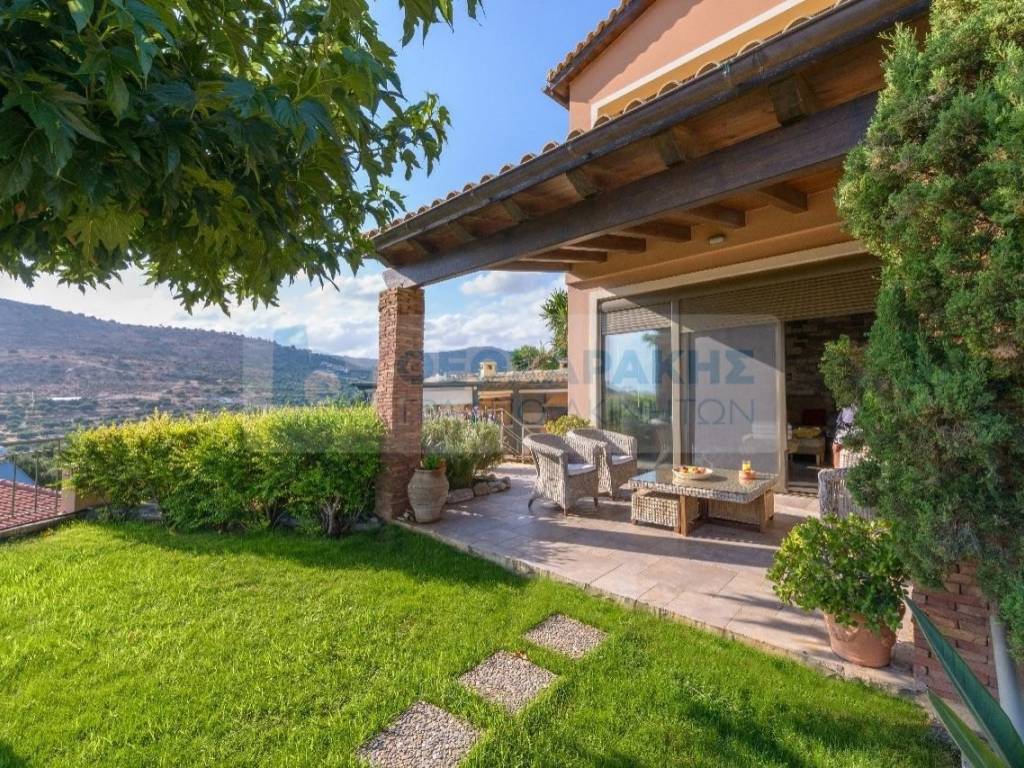 Gouves, Villa Ersi. Exclusive assignment of our office. Detached house 240 sq.m., on a plot of 603 sq.m., with three levels. On the ground floor (105 sq.m.) there is an open space, 2 bedrooms and a bathroom. On the 1st floor (45 sq.m.) there is 1 bedroom with dress room and bathroom. The basement (100 sq.m.) includes a playroom, bathroom, engine room and garage. The garden has a bbq, wood oven, pre-installed swimming pool, lawn and ornamental plants. It also has central heating, solar water heater, fireplace, air conditioning, alarm, etc.