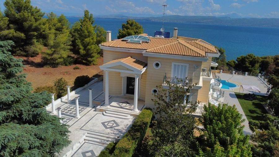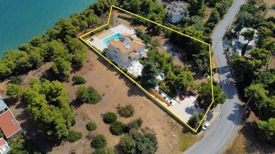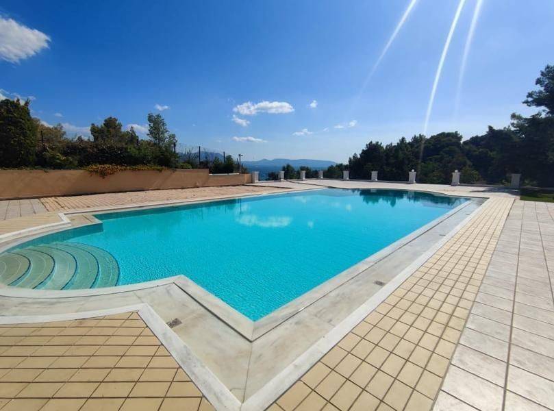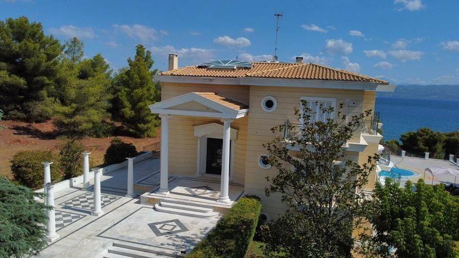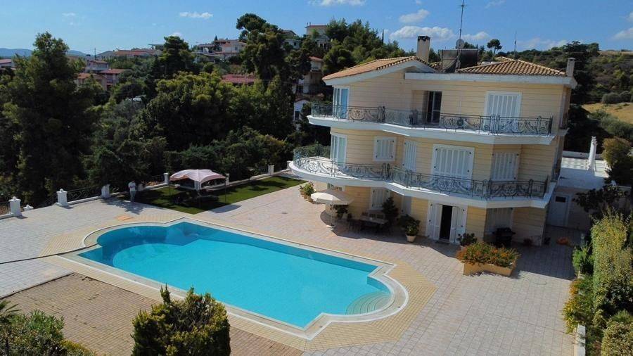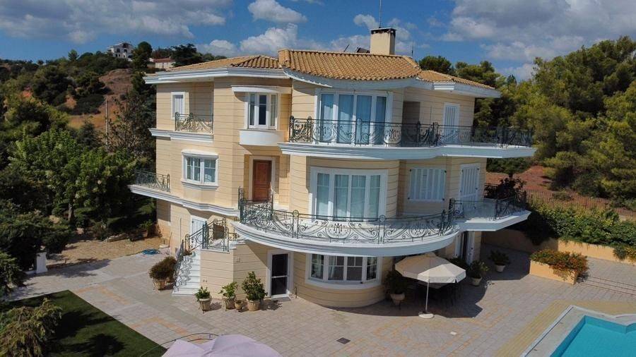Oropos - Detached House 1100sqm plot 6000sqm, bedrooms 6, year built 1997, energy class E, living room, kitchen, 6 bathrooms, heating type: autonomous, air condition, parking, quiet, luminous, sea view, storage space, solar heater, fireplace, balconies, elevator, garden, internal staircase, guest house, residential zone.