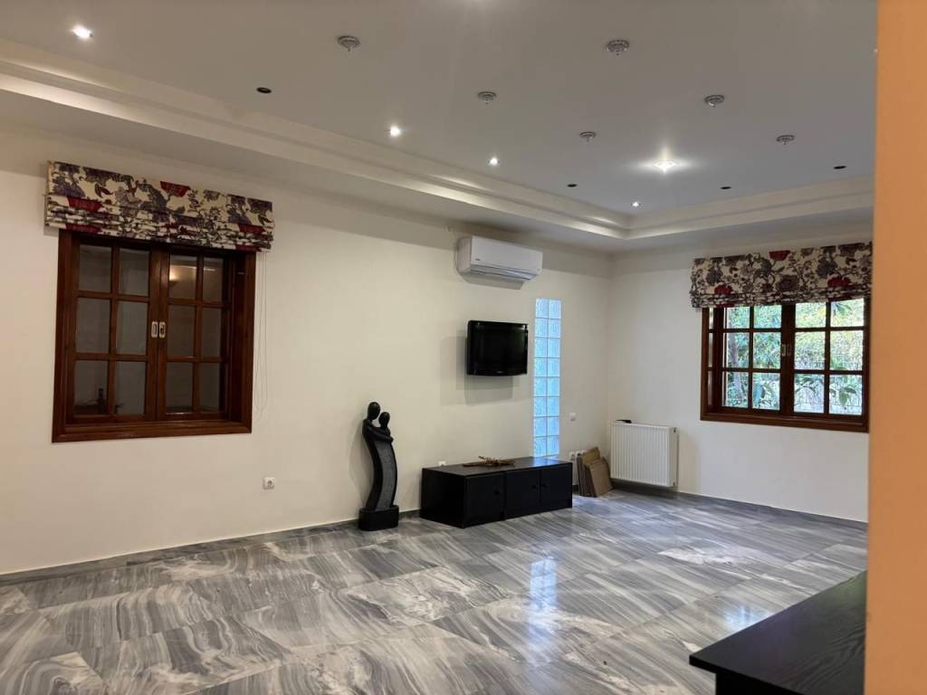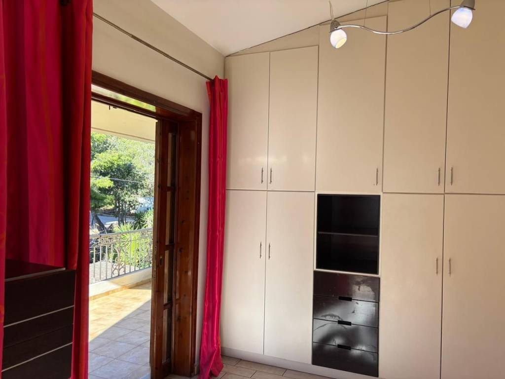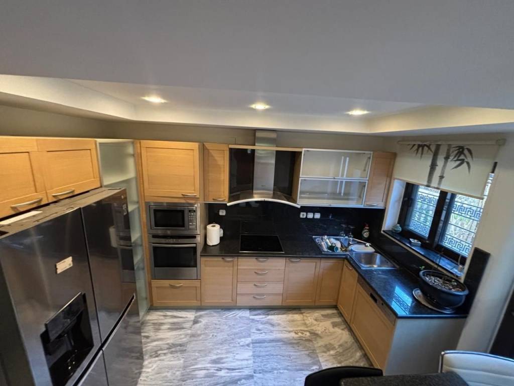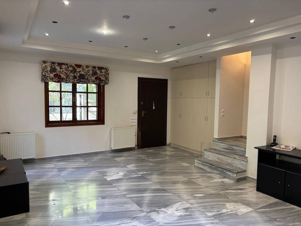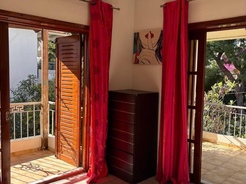 Maisonette for rent, 200 sq.m., in Kalymniotika, Voula. It consists of three levels: basement, ground floor, and first floor. It features 4 bedrooms, 2 bathrooms, a kitchen, living room, playroom, and one underground parking space. Amenities include autonomous oil heating, air conditioning, solar water heater, wooden/aluminum window frames with double glazing, security door, fully equipped kitchen, alarm system, video intercom, and pets are allowed. Located in a very quiet neighborhood with easy access, just 5 minutes from the center of Voula and the area’s beaches.