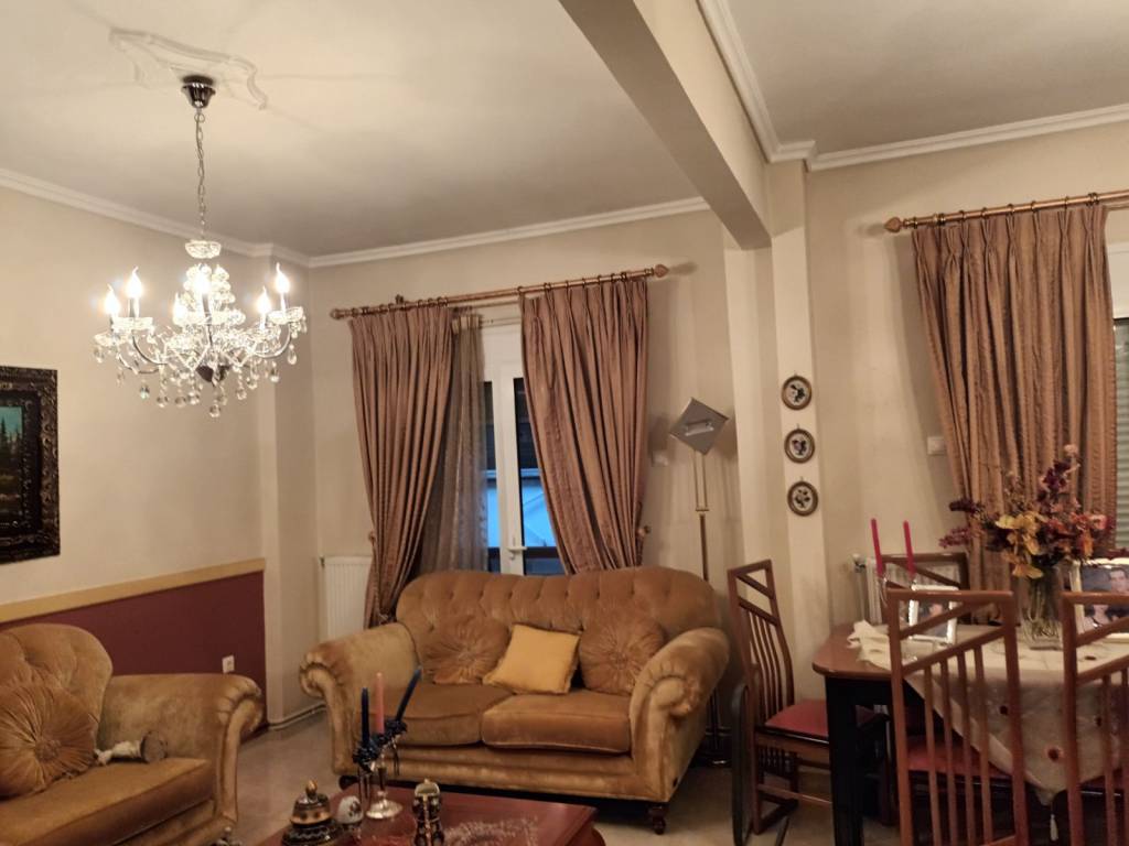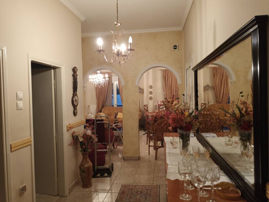 Διαμερισμα στο κεντρο (γραμμου) 2 δωματια, ευρυχωρο σαλονι, 1 μπανιο, 2 wc, κουζινα, διαδρομος. Υπαρχουν επιπλα δηλ τραπεζαρια, συνθετο μικρο και μεγαλος μπουφες που μπορουν να μεινουν στο σπιτι. Εντοιχισμενη κουζινα, πλυντηριο πιατων. Παταρι στο μπανιο