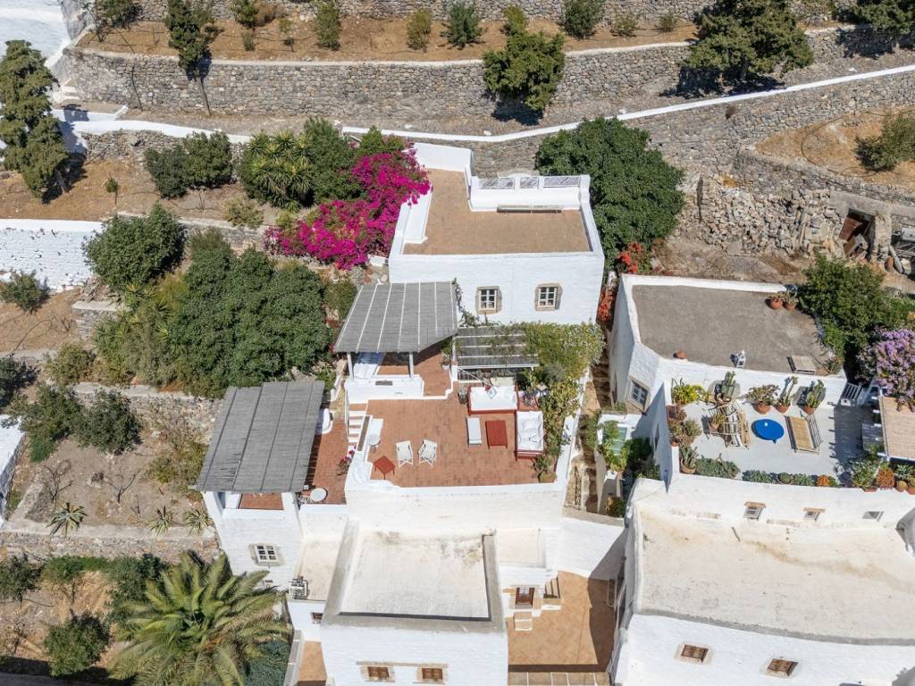 An outstanding residence in a privileged location, set on the boundaries of the historic Monastery and at the very core of Patmos Chora – a UNESCO World Heritage Site. The property spans 228sq.m. on a 207sq.m. plot and enjoys unobstructed sea views from three sides: east, south, and west. Developed across multiple levels, the house provides excellent privacy, seamless flow, and charming outdoor living spaces featuring three independent external entrances. The ground floor comprises the main reception areas, featuring a bright living room with dining area, a kitchen, 2 bedrooms, and 1 bathroom. An internal staircase leads to the mezzanine, which accommodates an additional airy bedroom. The upper level hosts a spacious master suite with a private bathroom and direct access to a private terrace with stunning views. The lower level includes another bedroom with its own bathroom, offering further privacy. Outdoors, the property benefits from a beautifully maintained garden and three impressive terraces with panoramic views of the sea and the surrounding landscape—perfect settings for relaxing or entertaining. A residence of rare charm and refined aesthetics, ideal for discerning buyers seeking a home with historical character, breathtaking views, and a serene atmosphere in the most iconic location of Patmos.