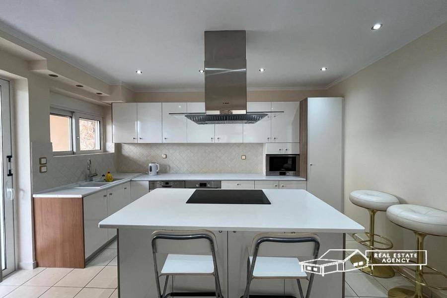 Vari-Miladeza, a luxurious detached house of 450 sq m, consisting of ground floor, 1st floor, attic and playroom is available for rent. It comprises very large reception areas with fireplace, spacious, independent kitchen with electrical appliances, 5 bedrooms (one master with its own bathroom, walk in closet and fireplace), 5 bathrooms (with 2 hydromassages) and wc. In the playroom there is a maid's room with its own bathroom and at the attic there is a very large veranda with bbq, a sitting area, wc and unobstructed view. The house has large verandas, elevator, security door, aluminum frames with double glazing and screens, solar, alarm, air conditioners, autonomous oil heating per floor, storage spaces, 1 closed parking space and 3 open ones. It has a shared, large swimming pool and its use is optional. It is ideally located with direct access to central roads, supermarkets and all kinds of shops. It is also suitable for commercial use, like company's office. The location on the map is indicative. Contact phone: +30 6944772536, website: www.merryland.com.gr, Email: sotiropoulou@merryland.com.gr, Id: 16384.