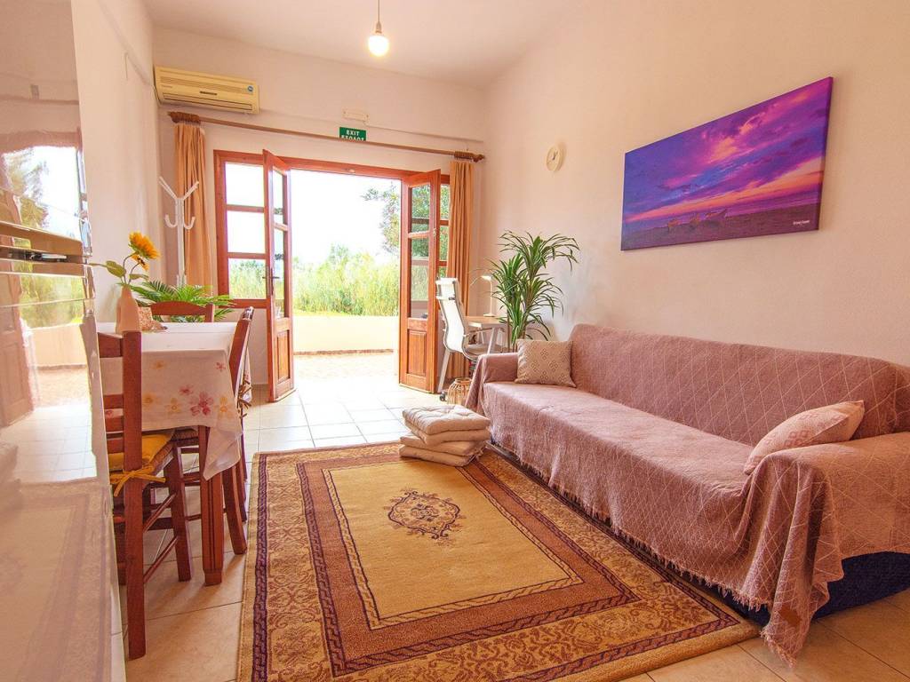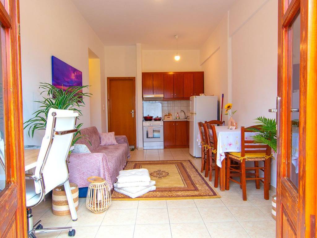 Winter Accommodation Availability 27/12/25 - 30/4/26 Capacity up to 2 people One pet allowed *All bills and taxes included *Linens and cleaning products provided upon arrival *Free use of shared laundry, 2 times a week *No cleaning service provided *No subletting *No agents 80 km from Chania city, 65 km from Rethymno and 140 km from Heraklion. 70 m. from the sandy beach with tamarisk trees, in Illinga. 3 supermarkets, bakery, pastry shop, snack bar, tavern, ATM nearby They have a fully equipped kitchen and a comfortable work area in the living room. They are ideal for long stays and remote work. Amenities Private parking Courtyard 20 sqm with garden and sea view Free wi-fi 50 Mbps Desk and office chair Air conditioning heating and cooling in the living room A+++ Air conditioning heating and cooling in the large bedroom A+++ Air conditioning heating and cooling in the small bedroom A+++ Electric water heater Fully equipped kitchen Electric stove with oven Fridge with freezer Bosch filter coffee maker Bosch mixer Bosch kettle Bosch toaster Bosch electric juicer Toaster grill Steam iron and ironing board Clothes rack Safebox Hair dryer Security lights Smoke detector Fire extinguisher Outdoor dining area 2 sun loungers Large 4 m umbrella, for the yard Shared washing machine Contact us directly for booking at WhatsApp: 0030 69732 67533 For summer stay: http://****.**
