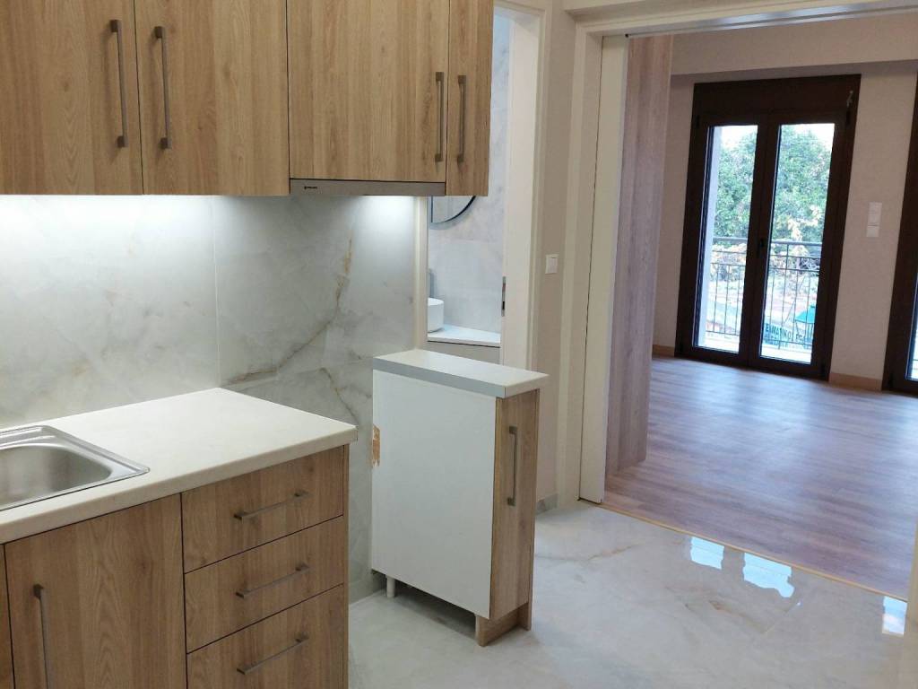 The property is located in the center of Nafpaktos, in the seaside zone of the Medieval Port area, close to the city’s commercial center. Both the building and the apartment were fully renovated in 2025 and have undergone a comprehensive energy upgrade, including thermal insulation, electrical and plumbing installations, kitchen, bathroom, carpentry, flooring, and staircase. The north-facing apartment is ideal for a single tenant seeking a home that combines the convenience of living in the city-centre with easy access to shops, services, various workplaces, and the sea. Thanks to the apartment’s layout and the installation of sliding doors between rooms, the kitchen, bathroom, and living/sleeping area can be easily separated, offering privacy without compromising natural light. Overall, the apartment remains bright and maintains an ideal, moderate temperature throughout the year. Additional key features of the property include: - No shared/common expenses for the building utilities (the tenant pays separately the bills for their apartment only) - Built-in fiber-optic infrastructure throughout the building - Solar water heater - Excellent indoor climate year-round due to insulation (reduced energy consumption) - Complete renovation completed in 2025 The apartment is offered unfurnished.