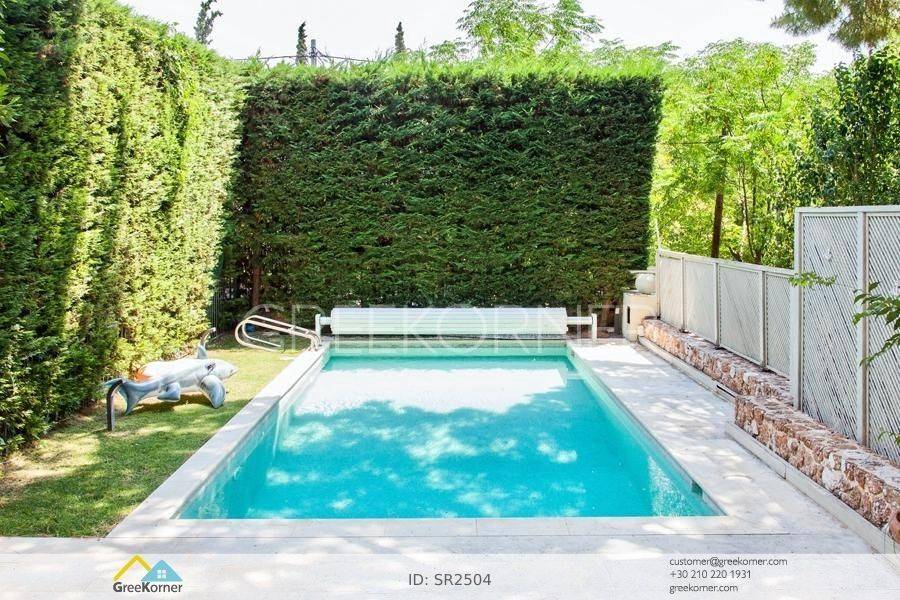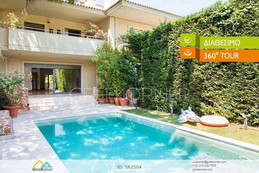 For sale: luxurious maisonette in Kefalari Kifissia. Located in a beautiful spot in a quiet neighborhood and close to the square, the maisonette offers comfort, tasteful luxury, and a serene environment. It is airy and bright, featuring spaces for all needs. It adapts to both small and larger families. A home cinema, gym, office, walk-in closet, elevator, large parking for three cars, and a separate fully-equipped apartment on the garden level are just some of the many advantages of the property. The living room overlooks the external, private, heated pool and the greenery surrounding it, creating a relaxing atmosphere. A functional, practical, cozy, and stylish home in one of the most popular and safe neighborhoods of Kifissia. Walk thought the home with the 360 tour here: http://tiny.cc/RR1715