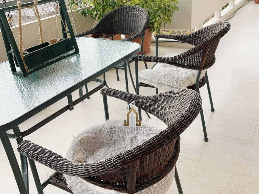 Melissia Furnished Apartment 140sqm 4th floor, 3 bedrooms, 2 living rooms, kitchen, hallway, 2 bathrooms, built in 1990, autonomous heating (natural gas), aluminum frames, air conditioning, solar water heater, security door and quiet area Price 430,000€ Property code: 120 For any information contact us