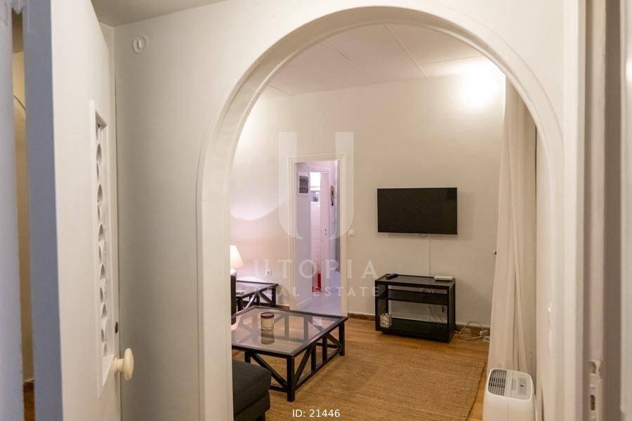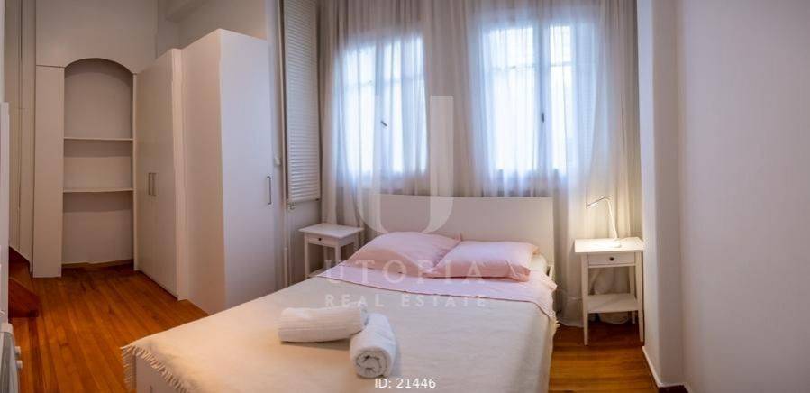 Paleo Faliro, Flisvos - Apartment 79sqm furnished fully, bedrooms 1, master bedrooms 1, ground floor, construction status fully renovated, year built 1924, renovation year 2020, energy class η, living room false, hall, kitchen false, bathrooms 1, wc 1, heating type: autonomous, heating medium thermal store, air condition, exposure, luminous, in corner, facade, garden, parquet, enwalling appliances, frames wooden, flooring type wood & tile, separate kitchen, with out commuals, secure door, pets allowed, nearby park (up to 200m), nearby entertainment (up to 200m), nearby market (up to 100m), nearby bus stop (up to 100m), nearby school (up to 500m), nearby sea (up to 200m). Price €650 (code. 21446) 216 0701958, 216 0701959 Utopia Real Estate