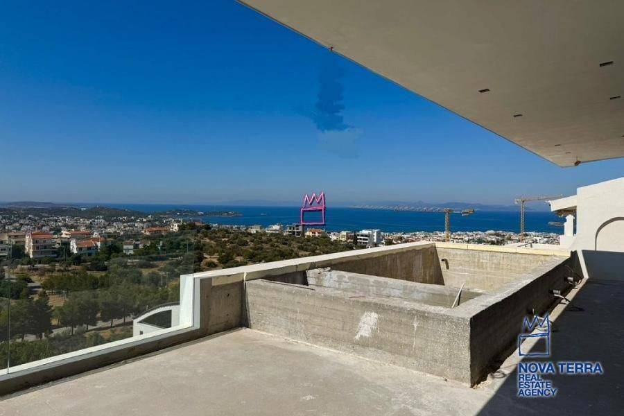 VOULA - EFOPLISTIKA, Penthouse, Sale, construction 2025. Newly built Penthouse 155sq.m and 60 sq.m. balconies with swimming pool and with unobstructed views that take your breath away, Sea, Green and Mountain. With its own entrance where the elevator enters the apartment. It has a spacious bright living room area with open kitchen, fireplace, 3 bedrooms (1 master), 2 bathrooms, 1 w/c and a laundry room. Underfloor heating, heat pump and wooden floors. Storage room., Luxurious, Security door, Asphalt access, Frontage, Screens, Alarm, Bright, Excellent condition: Satellite dish: Investment: Parking: Garage, Energy class: A. property code: 51834, www.nova-terra.gr