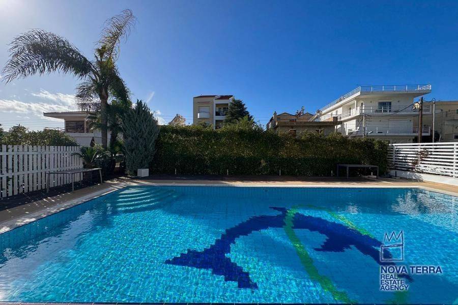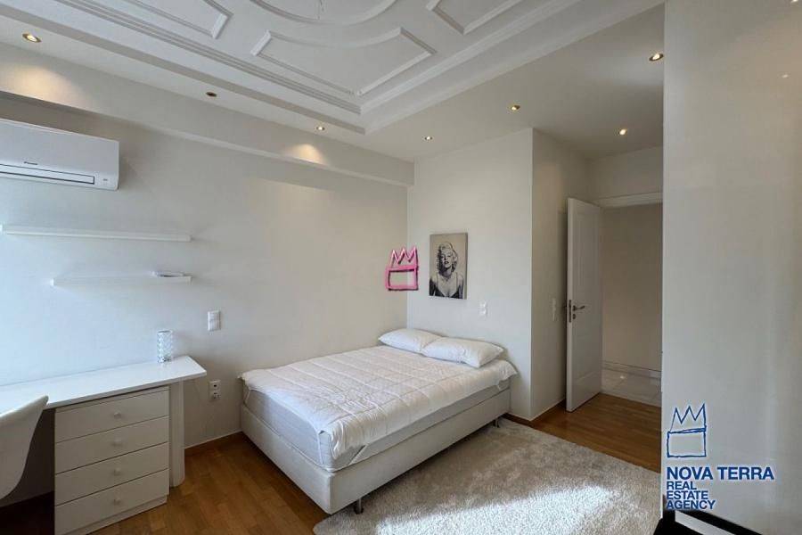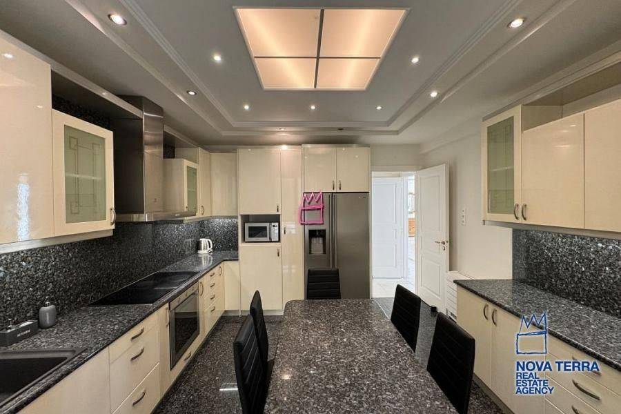 VOULA - DIKIGORIKA, Single Floor Apartment,, Rental, 300 sq.m, year built 2000, 4 rooms, 4th, View: Seaview, Unobstracted view, Various Characteristics: Balcony, Bath (4), Escalator, Fire Place, Furnished, Garden, Kitchen, Living room, Playroom, Refurbished, Store Room, Swimming Pool, Toilet, Master Bedrooms: 4 Master Bedrooms, Flooring: Murble, Heating: Air Conditioning, Autonomous Heating-central systm, Floor heating, Access road, Aluminium panels, BBQ, Boiler, Bright, Electric Roller Windows, Facade, From Side to Side, Gym, Luxury, Maid Room, pets allowed, Residential area, Satellite TV, Screens, Security Alarm, Security Door, Solar Heating, Tents, In perfect condition: : Parking area: Garage (2), Energy class: Β. property ID: 18191, www.nova-terra.gr