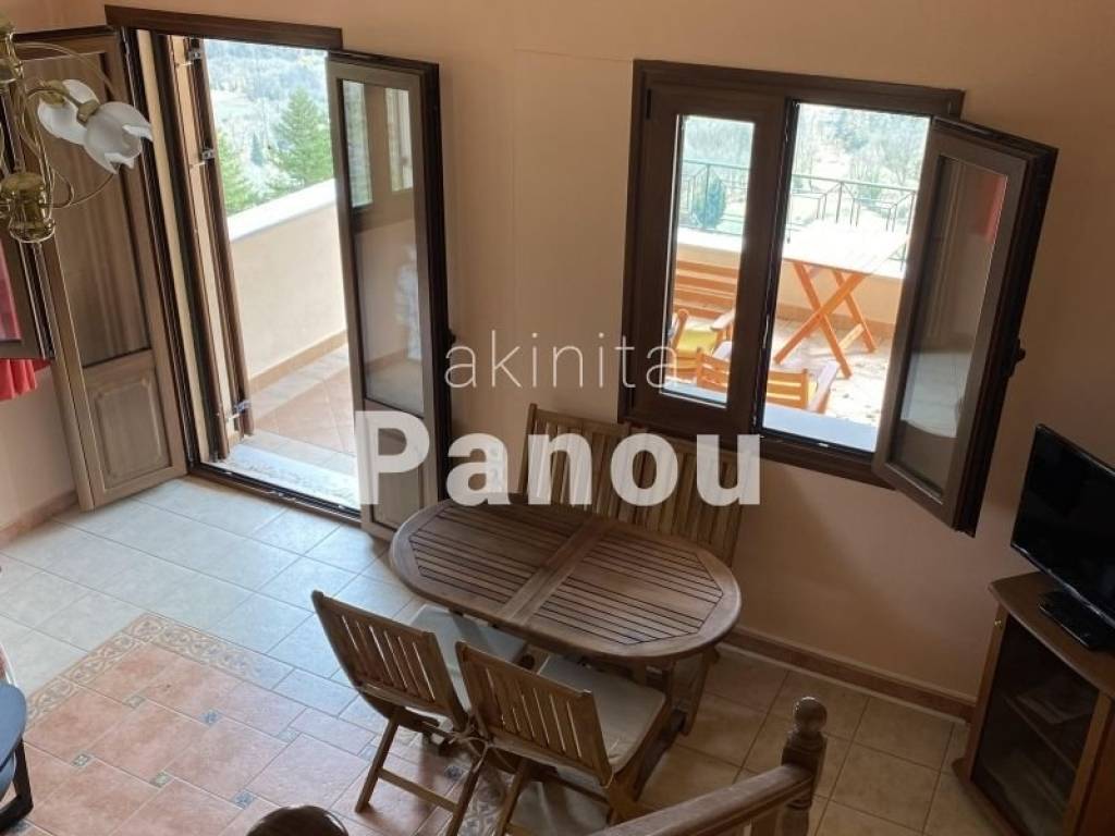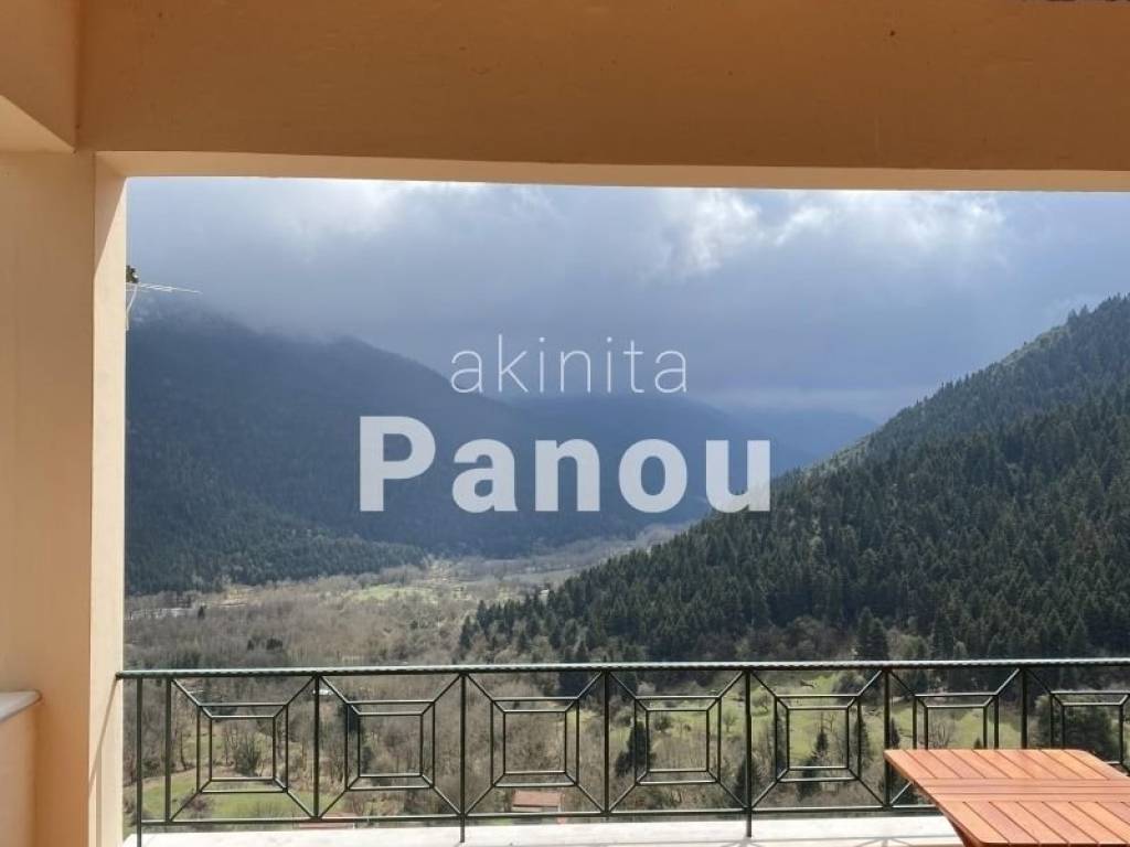 Property code: 1-241 - Karpenisi/ Koryschades - FOR RENT - Furnished 3-level detached house with a total area of 90 sq.m. on a plot of 800 sq.m. Unique view! It consists of 2 bedrooms, 1 living room with fireplace, 1 kitchen, 1 bathroom, 1 WC, 2 verandas, storage room, playroom, parking. Built in 2003. It has pre-installation for heating (to be agreed), aluminum frames with double glazing, tiled roof, internal staircase. Distance from the city 5000 meters, distance from the Velouchi ski center 15000 meters. Price: €490 (Partition with identical residence / can be rented together)