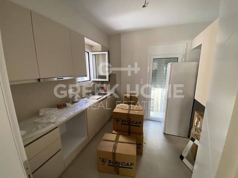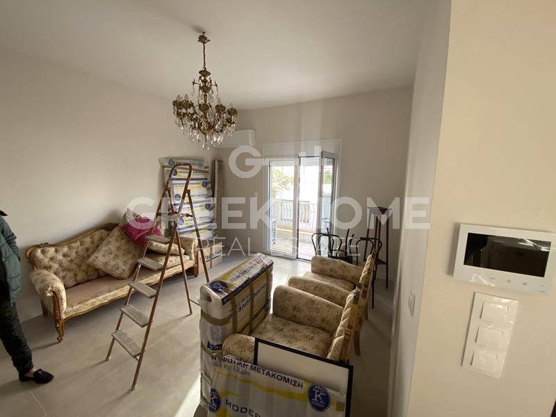 Zografou, Centre - Apartment 85sqm partially furnished, bedrooms 2, 2nd, penthouse, fully renovated, year built 1963, renovation year 2026, energy class E, living room, hall, kitchen, bathroom, air condition, quiet, dual aspect apartment, luminous, park view, frontage, painted, electric roller shutters, solar heater, balconies, tents, loft storage, aluminum frames, double glazed windows, ceramic tiles floors, separate kitchen, without common charges, secure door, video doorbell, pets allowed.