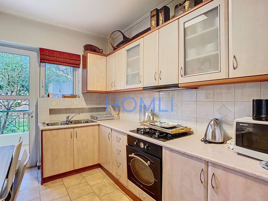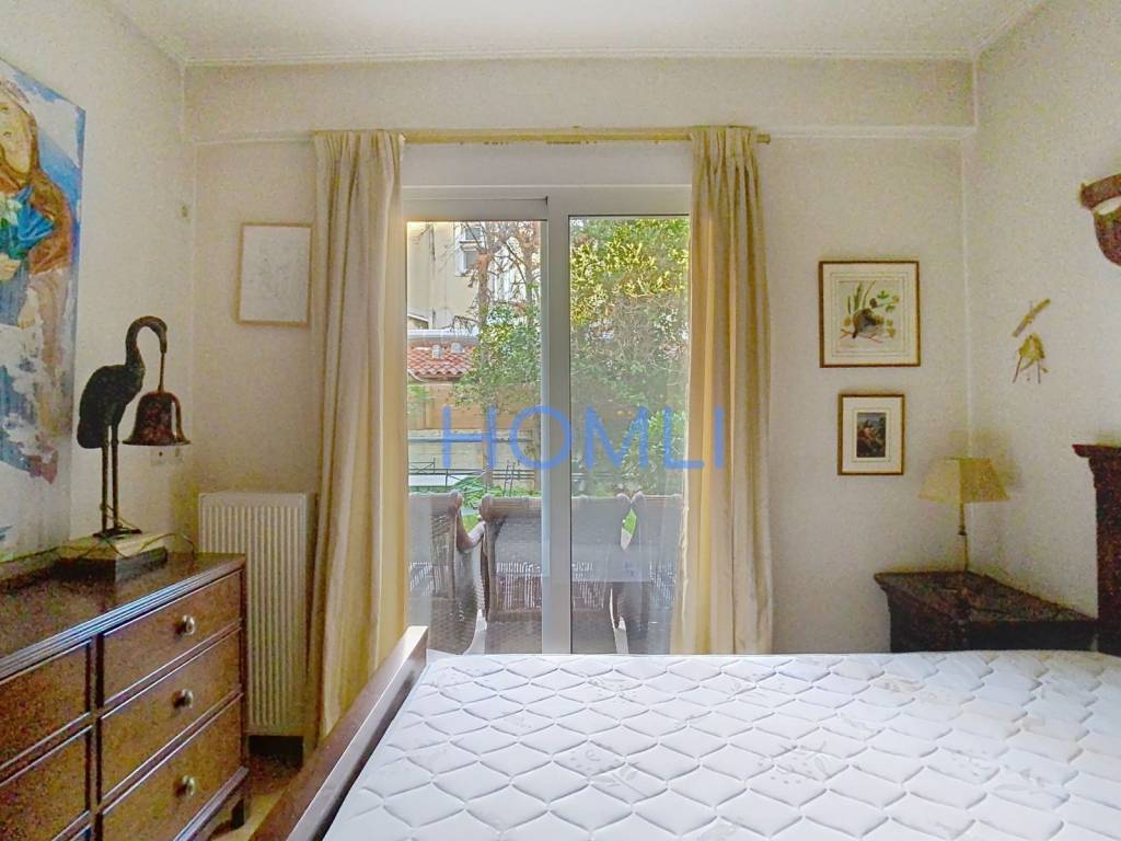 Modern and furnished apartment with private garden, underground parking, and swimming pool in a quiet area of Kifissia. It has an excellent layout, independent natural gas heating, its own garden with lawn, underground and closed parking space, communal swimming pool, fireplace, and aluminum window frames. It is located in a privileged location, close to sports facilities, offering easy access to main roads, the National Highway, and all the amenities of the area. Contact us for more information.