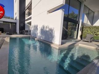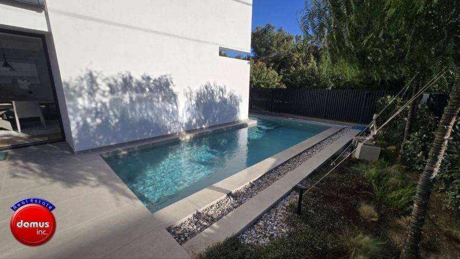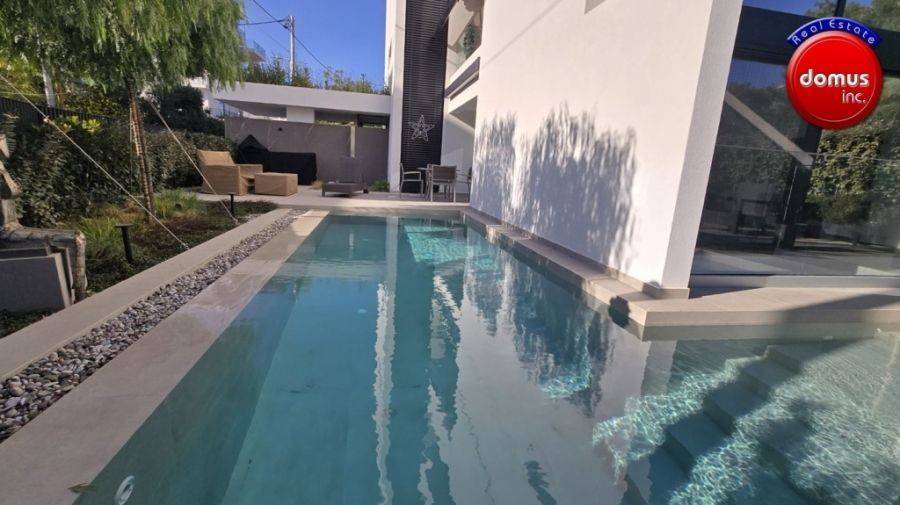 Voula, Dikigorika, Maisonette For Rent, 248 sq.m., Property Status: Amazing, Floor: Ground floor, 3 Level(s), 4 Bedrooms (1 Master), 1 Kitchen(s), 4 Bathroom(s), 1 WC, Heating: Autonomous - Heat Pump, Building Year: 2025, Energy Certificate: A+, 2 parking(s), Floor type: Wooden floors, Type of door frames: Aluminum, Features: Elevator, Security door, Security alarm, CCTV, Storage room, Fireplace, Satellite Receiver, Electric Appliances, Playroom, Internal Staircase, Double Glazed Windows, Window Screens, Balconies, Luxury, Roadside, Bright, On Corner, Underfloor, AirConditioning, Solar water system, Boiler, Trees, Swimming pool, Back yard (Garden), New Construction, Price: 8.500€. Domus inc., email: gr@greekblue.gr
