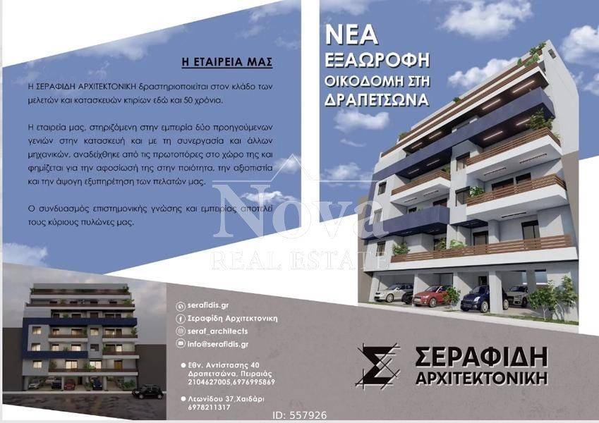 Drapetsona, Agios Panteleimon - Apartment 75sqm bedrooms 2, 1st, under construction, constructionstage frames, year built 2025, energy class A, living room, kitchen, bathroom, heating type: autonomous (heat pump), storage space 1sqm, large balconies, elevator, aluminum frames, double glaze windows, ceramic tiles floors, luxurious, close to bus stop (up to 100m), close to sea (up to 100m), close to metro/train (up to 100m), close to port (up to 100m), close to square (up to 100m), close to market (up to 100m).