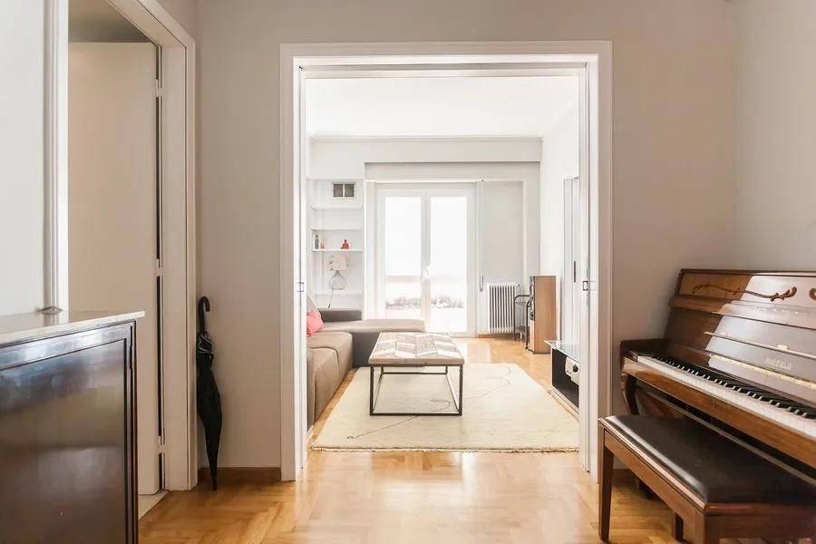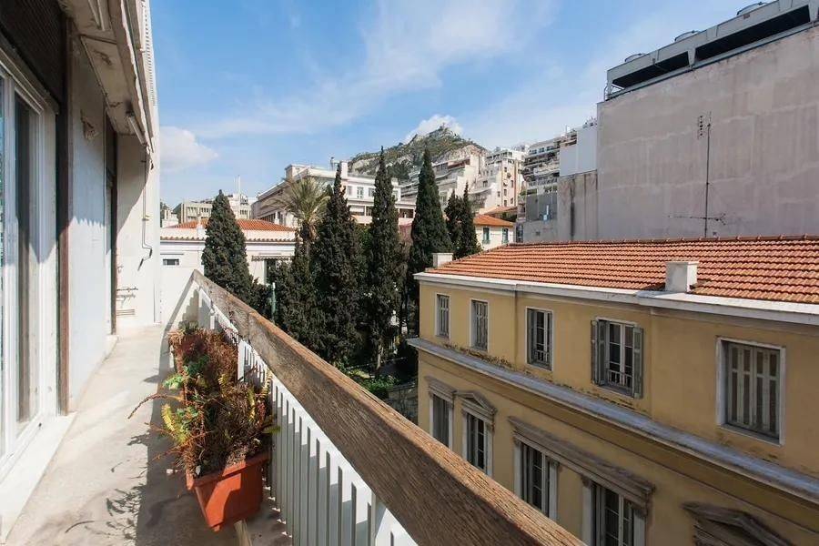 Apartment for sale in the center of Athens, on Odos Didotou, in Kolonaki. Panoramic view, from the 4th floor. Excellent construction (Stagopoulos-Vourekas-Hilton designers) Bright and spacious.