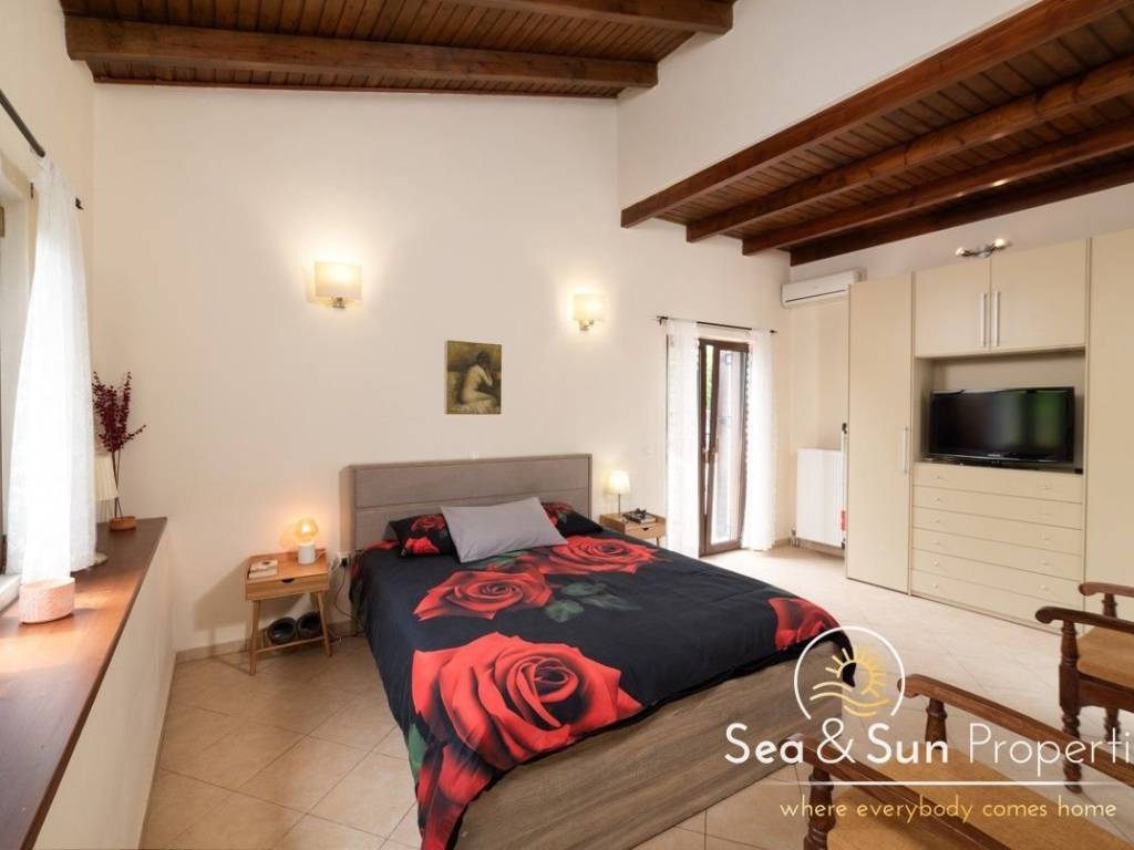 Located in the picturesque village of Armenoi, in the lush region of Apokoronas, this charming stone-built villa offers an ideal balance of authentic Cretan character and modern-day comfort. The property provides 127 sqm of living space and has 2 bedrooms and 2 bathrooms. The property features an open-plan kitchen, dining, and living area that forms the heart of the home, a welcoming and sociable space enhanced by an open fireplace, making it comfortable throughout the year. The two generously sized bedrooms and two bathrooms, including an impressive master bedroom with double-height ceilings and a private en-suite, are truly wonderful. The property also features fitted wardrobes, central heating, and air conditioning. The outdoor areas are a key highlight, with three balconies providing inviting spots to relax and enjoy the village ambiance. Above, a spacious roof terrace offers sweeping views across Armenoi’s rooftops, ideal for sunset meals, entertaining, or simply unwinding. A shared courtyard further enhances the traditional village feel. With its blend of natural stone, wooden details, and modern amenities, this home offers a timeless appeal rarely found in village properties. Whether used as a full-time residence or a holiday retreat, it presents an excellent opportunity in one of Apokoronas’ most sought-after villages. Positioned just a short walk from local tavernas, cafés, mini markets, and the village pharmacy, the home enjoys a prime location that allows you to fully embrace village life without sacrificing convenience. Armenoi is a small, picturesque village situated directly beside the seaside resort of Kalyves, and approximately 20 km east of Chania. Kalyves is one of the main administrative centers of the beautiful Apokoronas region and a hub packed with a variety of amenities, including tavernas, cafes, and hotels. The proximity to the National Road makes Kalyves an ideal starting point for anyone wanting to discover the island of Crete, while the sandy beaches of the northern coast of Apokoronas are at your feet, and the city of Chania is just a 20-minute drive away. RCCO705