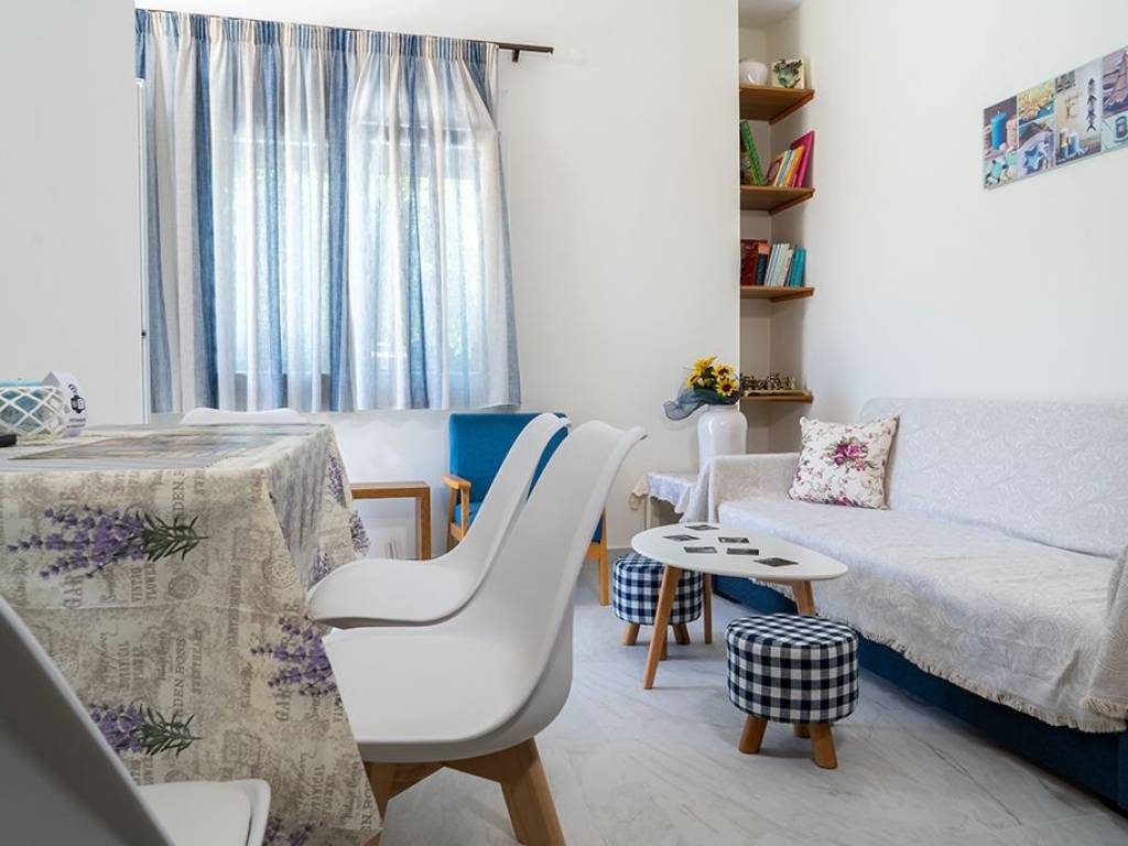 This is a ground floor apartment of 62 m2, recently renovated, ideal for up to 4 people which includes a bedroom with a double bed, a bedroom with twin beds, fully equipped kitchen, living room, wc, air condition, parking,free wifi, spacious balcony with a separate entrance The apartment is located within the settlement of Sykia village at the foot of Mount Dragoudeli and at a distance of about 300 m from the center of the village and 4 km from the nearest beach. Within walking distance from the apartment are supermarkets, butcher shops, bakeries, taverns, cafes, doctor's office, and playground. Plan a swim in the nearest beaches of the area such as Agridia, Valti, the picturesque Tourkolimiona, the ideal for small children Klimataria and finally the exotic Tigania. Before you check out do not forget to taste some traditional products such as meat from cattle that are bred freely of the traditional Greek breed Sykia, goat cheese, the unique quality flower honey from sousoura or chestnut flowers and finally the rich in iodine kritama . We wish you a pleasant stay and an unforgettable and safe summer !!!! Minimum number of nights:10 Indicative cost of a night: from 90€ The apartment is offered for monthly booking CHRISTOS : +30 6937857844 (viber,WhatsApp)
