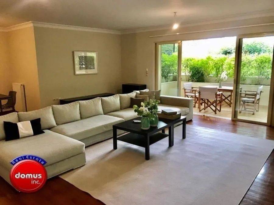 Glyfada, Kato Glyfada, Apartment For Rent, 160 sq.m., Floor: 2nd, 1 Level(s), 3 Bedrooms (1 Master), 1 Kitchen(s), 3 Bathroom(s), 1 WC, Heating: Autonomous, View: Sea view, Building Year: 2005, Energy Certificate: D, 1 parking(s), Floor type: Wooden floors, Type of door frames: Aluminum, Features: Security door, Security alarm, CCTV, Storage room, Fireplace, Satellite Receiver, Double Glazed Windows, Window Screens, Balconies, Luxury, Airy, Roadside, Bright, AirConditioning, Solar water system, Boiler, Trees, Back yard (Garden), Painted, Price: 3.800€. Domus inc., Tel: 2108955583, email: gr@greekblue.gr