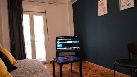 Renovated apartment in Patisia, 4th floor, with elevator. It has 1 bedroom with double bed, 1 bathroom, washing machine, living room with sofa, desk and chair, flat screen Smart TV, wifi, fully equipped kitchen, balcony under the open sky. The accommodation is non-smoking and offers air conditioning, cooling and heating. Suitable for medium-term rental. The Agios Nikolaos electric station is a 5-minute walk from the apartment.