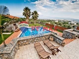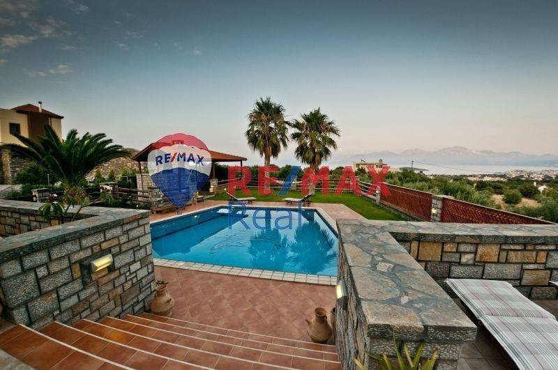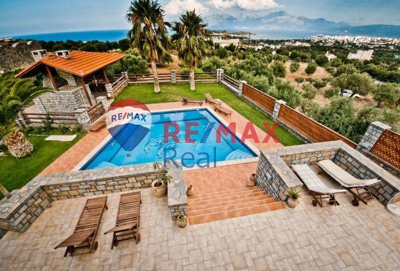 Set in an idyllic location just 2 km from Agios Nikolaos and only 1 km from the sea, this unique three-level villa is built on a 3,700 sq.m. plot and offers absolute privacy, comfort, and panoramic views of the sea and the surrounding mountains. The villa features an electric entrance leading to a spacious parking area and a beautifully landscaped garden with lawn, terraces, pergola, BBQ area, and an impressive 65 sq.m. swimming pool with hydromassage and artistic mosaic details, creating a unique environment of relaxation and luxury. The ground floor consists of a bright open-plan living and dining area with a fireplace and direct access to the terrace and the pool, as well as a fully equipped, state-of-the-art kitchen. Additionally, there is an entrance hall, a service room, a WC, and a storage room. An internal staircase leads to the first floor, where three comfortable bedrooms are located. The master bedroom features an en-suite bathroom with a hydromassage column and a private veranda, while the other two bedrooms share a luxurious bathroom with a corner jacuzzi. On the upper level, there is the fourth bedroom with a private bathroom and shower, offering absolute privacy and unique views. The basement includes a sauna room, two storage rooms, an underground garage, a bathroom with shower, and two additional rooms that can be used as bedrooms, guest rooms, or an entertainment area. The villa has been constructed with high-quality materials and offers central heating, air conditioning in all areas, double-glazed windows with insect screens, video intercom, and satellite television. It is an ideal choice for both permanent residence and holiday or investment use, combining absolute privacy, luxury, and easy access to the natural beauty of Eastern Crete.