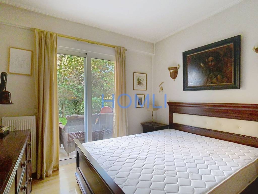Modern and furnished apartment with private garden, underground parking, and swimming pool in a quiet area of Kifissia. It has an excellent layout, independent natural gas heating, its own garden with lawn, underground and closed parking space, communal swimming pool, fireplace, and aluminum window frames. It is located in a privileged location, close to sports facilities, offering easy access to main roads, the National Highway, and all the amenities of the area. Contact us for more information.