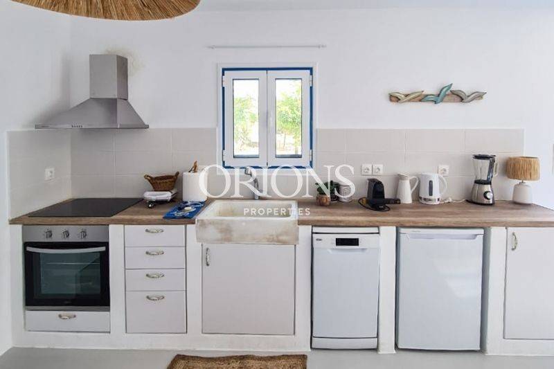 Ο κύριος χώρος περιλαμβάνει ενιαία κουζίνα και σαλόνι, σε έναν ανοιχτό και λειτουργικό χώρο που συνδέεται φυσικά με τους εξωτερικούς χώρους. Το φως μπαίνει άνετα στο σπίτι και η θέα προς τη θάλασσα δίνει μια αίσθηση χαλάρωσης στην καθημερινότητα.