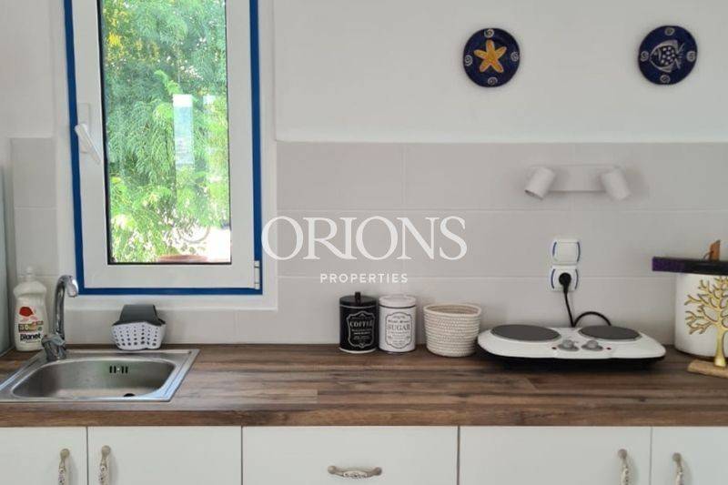 Πωλείται επιπλωμένο και διαθέτει κλιματισμό, ξύλινα κουφώματα, ηλεκτρικές συσκευές, ηλιακό θερμοσίφωνα και ξεχωριστό χώρο πλυντηρίου. Κατασκευάστηκε το 2001 και είναι καλά συντηρημένο, με μια ζεστή και ανθρώπινη αίσθηση.