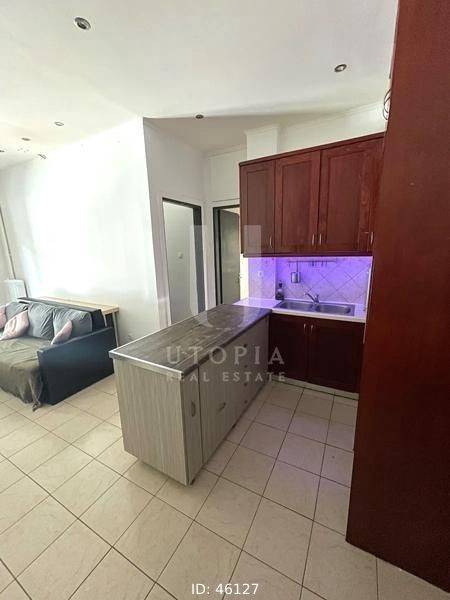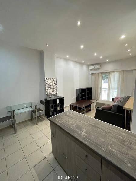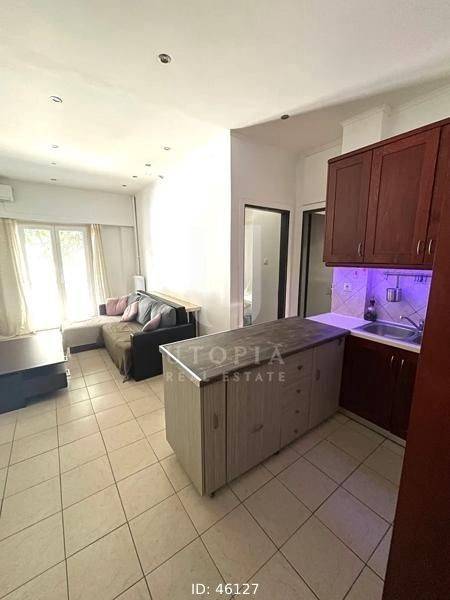 Neos Kosmos - Apartment 46sqm fully furnished, bedroom, levels 1, 1st, year built 1973, renovation year 2007, energy class D, living room, kitchen, bathroom, heating type: central (oil), air condition, quiet, luminous, frontage, balconies, elevator, built in appliances, aluminum frames, double glazed windows, secure door, residential zone, access from asphalt, close to metro/train (up to 1000m), close to market (up to 200m).