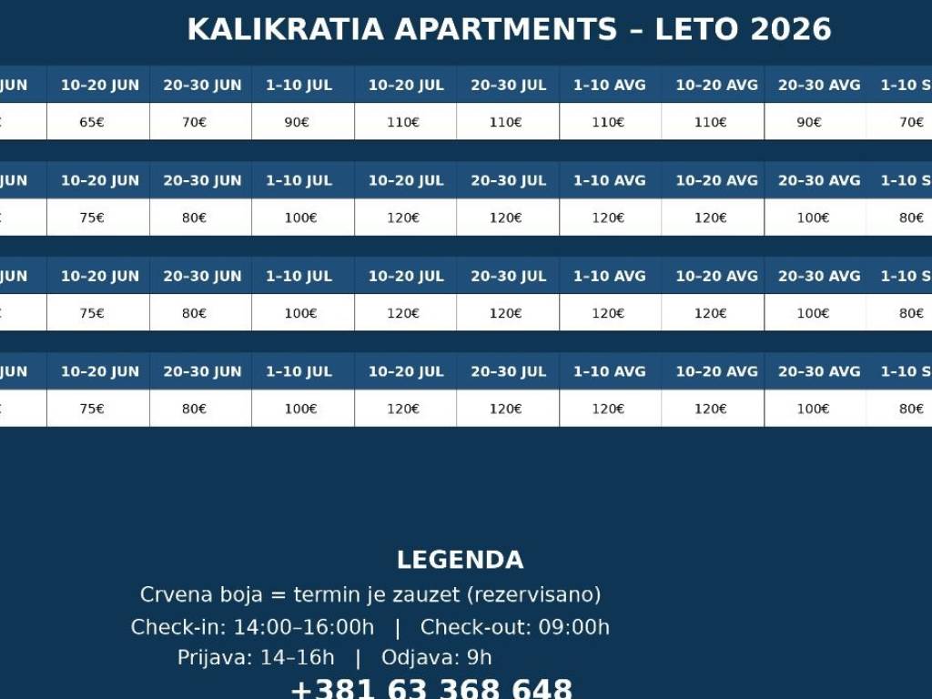 For Rent – Apartment on the Beachfront – Nea Kalikratia Enjoy a vacation with a million-dollar view — the sea right in front of you, peace and comfort at your fingertips! ✅ Location: first line to the sea, Nea Kalikratia Spacious and fully equipped apartment, ideal for couples and families Last-minute offer for May ✅ €60 per night for stays of 10 days ✅ €65 per night for 7 days or shorter stays Book now and secure your perfect seaside holiday at an amazing price! Contact us for more information and availability. Reservations & info: Viber / WhatsApp: +**/****** (Direct contact with the owner)