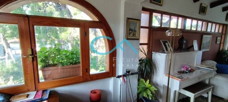Athens - North Suburbs, Drosia: In a green and quiet part of Drosia, for sale a partially renovated airy three-sided very bright Apartment 152 sq.m. in 1000 sq.m. frontage plot on the 2nd floor with elevator with underfloor individual heat pump heating in a 2-story building. An apartment with a special character, plenty of natural light, oak doors and wardrobes, a special design separating the kitchen from the living room. It consists of 3 bedrooms, 1 kitchen, 1 living room, Garden, external storage, bathroom and 1 WC. It is partially furnished, with electrical appliances, built in 1987, close to Avenue, Square, Market, public transportation and has a mountain view, security door, 2 indoor parking spaces, energy class Z, tiled floors, fireplace, awnings. It is ideal for families and pets are allowed. Additional features: 1/3 of the 150 sq.m. playroom belongs to the apartment. which is located in the semi-basement and which is used as a common space by the 3 owners of the apartments for events, children's parties, etc. and has direct access to the large green garden. The apartment has garden and mountain views, it is close to a bus stop, Loft, Underground Storage. Price €450,000 Property Code: #6-9172