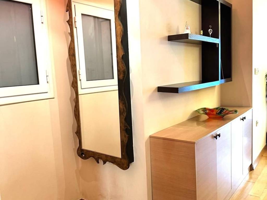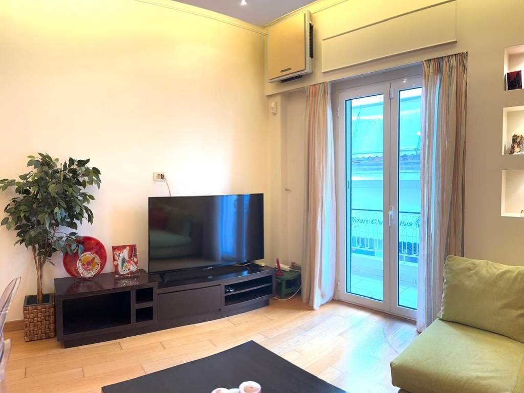 The apartment is in excellent condition and consists of an open-plan kitchen and living room, a bathroom, one bedroom, and two small balconies (one at the front and one at the back). It comes fully equipped with electrical appliances, furniture, light fixtures, air conditioning units, curtains, etc. It is beautifully designed with excellent aesthetics. It is located close to the electric railway station (ISAP), bus stops, and Piraeus Avenue.
