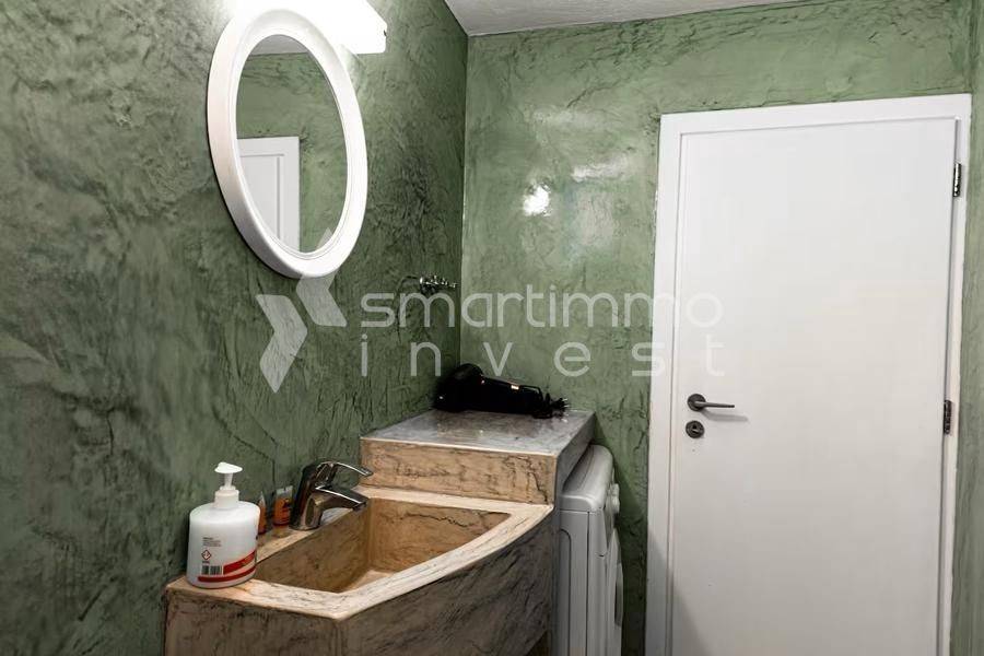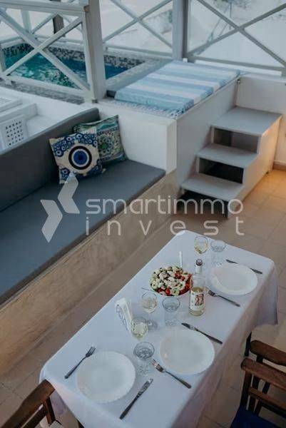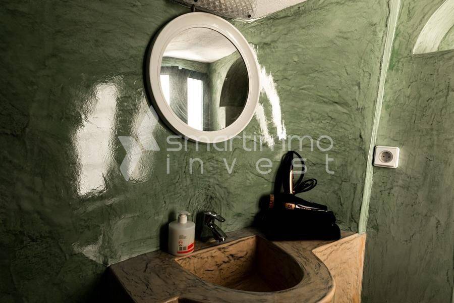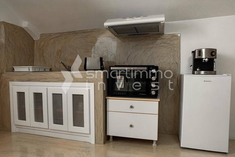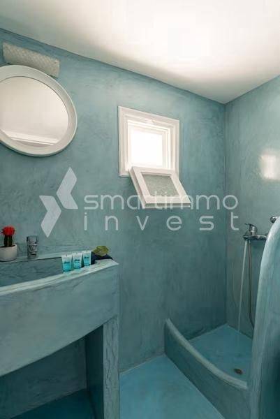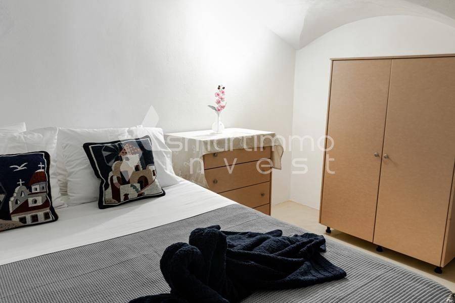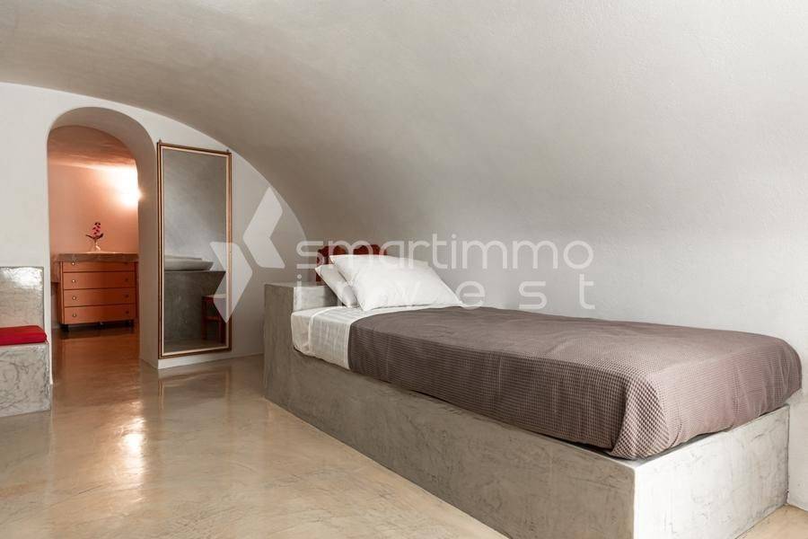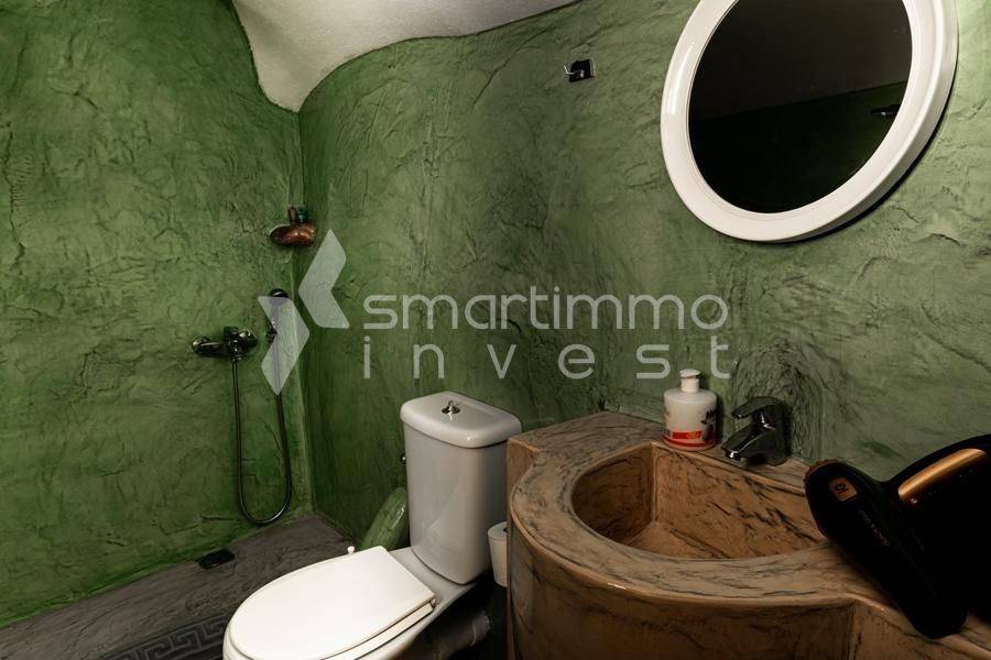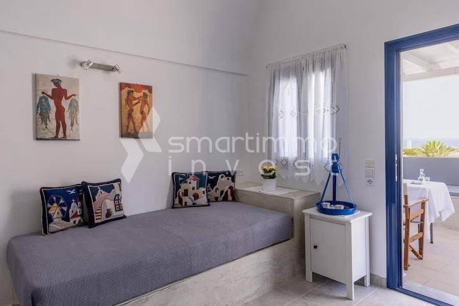 Located in the traditional village of Emporio in Santorini, at the lower part of the medieval Kastelli castle, this exceptional stone residence from the previous century is offered for sale, fully renovated in 2024 with absolute respect for Cycladic architecture and local heritage. This corner property enjoys a southeast orientation and extends over a total surface of 145 sq.m. across three independent levels, set on a 60 sq.m. plot, with accommodation capacity for up to ten guests. The property consists of three fully autonomous apartments, upper floor, ground floor and cave house, each featuring a private bedroom, kitchen and bathroom with shower, all constructed in traditional Cycladic polished cement technique. Built-in beds with storage spaces, full electrical appliances, washing machines, air conditioning or fans, smart TVs and Wi-Fi connectivity ensure comfort and functionality on every level. The upper floor, a striking traditional dome with a height of 4.7 meters, includes a mezzanine bedroom with sea view, a living area, kitchen, bathroom and access to a spacious 19 sq.m. terrace with pergola and a heated outdoor jacuzzi, offering uninterrupted views of the sea, Kastelli, Prophet Elias mountain and the traditional settlement. The ground floor apartment comfortably accommodates four guests and includes a bedroom, living area, kitchen, bathroom and a shaded courtyard, while the cave house apartment offers natural insulation, stable temperature year-round, a master bedroom, living area, kitchen, bathroom and dedicated ventilation system. Situated in one of the most vibrant and well-organized villages of Santorini, with immediate access to shops, services, public transport and free parking areas, this property represents an excellent investment opportunity or a high-quality private residence, combining authenticity, elegance and prime location.