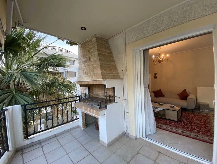 διαμέρισμα 89τ.μ. στην Άνω Γλυφάδα, 2ος όροφος, πλήρως επιπλωμένο και ανακαινισμένο. Διαθέτει 2 υπνοδωμάτια, σαλόνι με τζάκι, κουζίνα, μπάνιο, αυτόνομη θέρμανση, κλιματισμό και πόρτα ασφαλείας. Με ασανσέρ, θέση parking, μεγάλη βεράντα, κήπο και θέα. Ενεργειακή κλάση Β+.