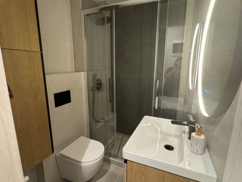 1st elevated floor in a small and quiet apartment building. Features 2 large bedrooms, living room, kitchen, laundry room, and bathroom. Through apartment and very sunny, as it faces a main road. Easy parking in the area. A fully renovated home (2025–2026). With brand-new plumbing and electrical installations and luxury materials throughout. 10 minutes’ walk from a metro station
