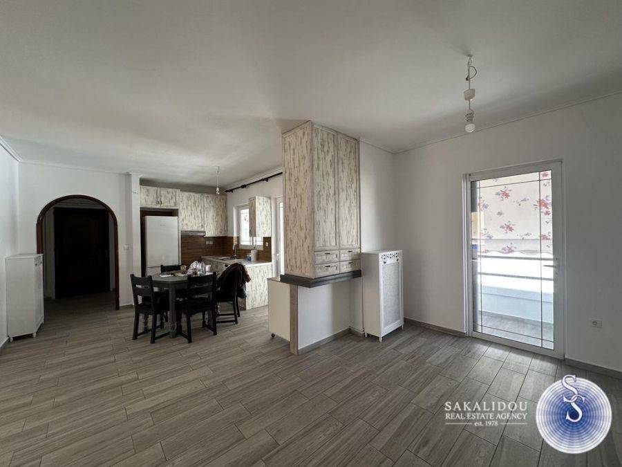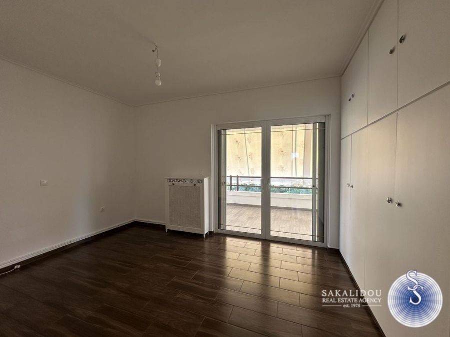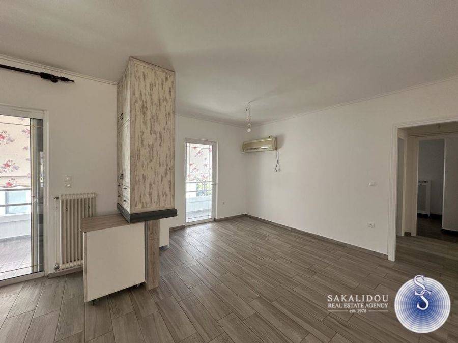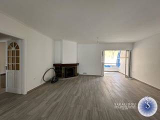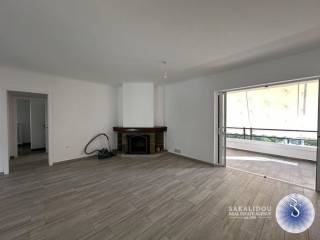 Glyfada, Kato – Corner renovated 3rd-floor apartment of 102 sq.m. with a view of greenery. It consists of a spacious living area with fireplaces and an open-plan kitchen equipped with a dishwasher and refrigerator, 2 bedrooms, 1 bathroom, and 1 WC. It features large verandas, independent heating with oil, double-glazed windows, insect screens, 1 parking space under a pilotis, and 1 storage room in the basement. Close to public transportation, Glyfada Square, and the sea.