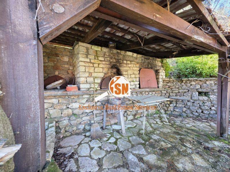 It has a wonderful 2-acre garden with stone fencing, a traditional stone wood-fired BBQ oven, a wood shed, and many trees.
