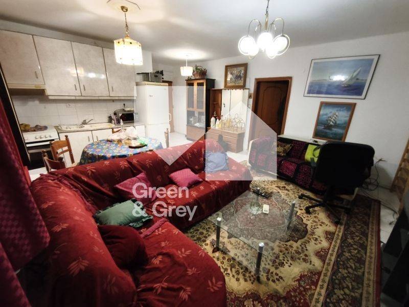 Front semi-basement studio apartment 65sqm, built in 1988. The property consists of a living room, a bedroom with a large wardrobe and a bathroom with a window, which is fully renovated, the floor is tiled. It is available fully furnished with all electrical appliances, with the option of choosing and without furniture. It has two air conditioners, one in the bedroom and one in the living room, two large TVs, a solar water heater and an additional water heater. In addition, it offers an armored security door, an alarm and synthetic frames with double glazing, combining comfort, safety and functionality.